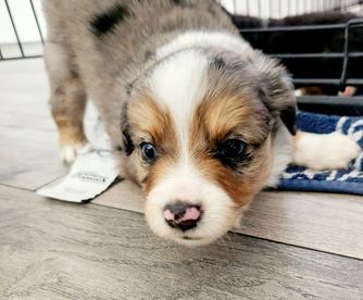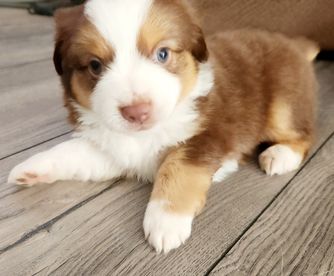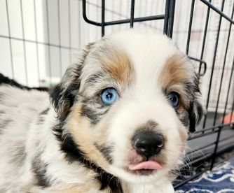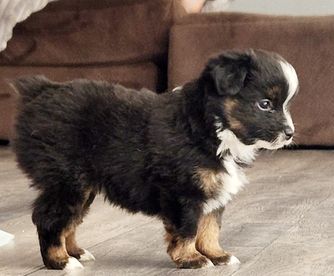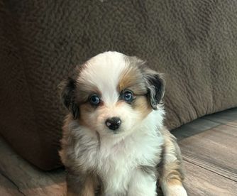 Our Miniature Australian Shepherd puppies include blue merle, black tri, red tri, and red merle. Toy Australian Shepherd puppies include black tri, blue merle, red merle, and red tri. Colors will vary depending on the parent dogs.