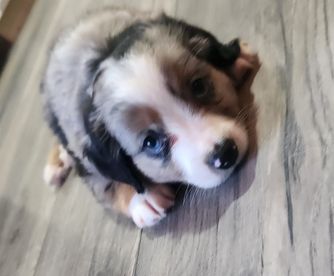Koda is a brown eyed (blue flecks) dark blue merle with a long coat. He stands 12" and weighs around 12-15 lbs. He is ASDR registered and comes from BET lines.