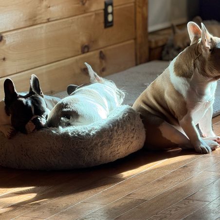 We pride ourselves on our in home and family raised program. Our dogs are all in house and spoiled. I work from home so I am with them all day every day. Our puppies are raised within the family and socialized with kids and other dogs before they ever go home to new families. We pride ourselves in producing frenchies that are healthy with excellent temperaments. I’ve been told our dogs are some of the best tempered French Bulldogs that our clients have ever met!