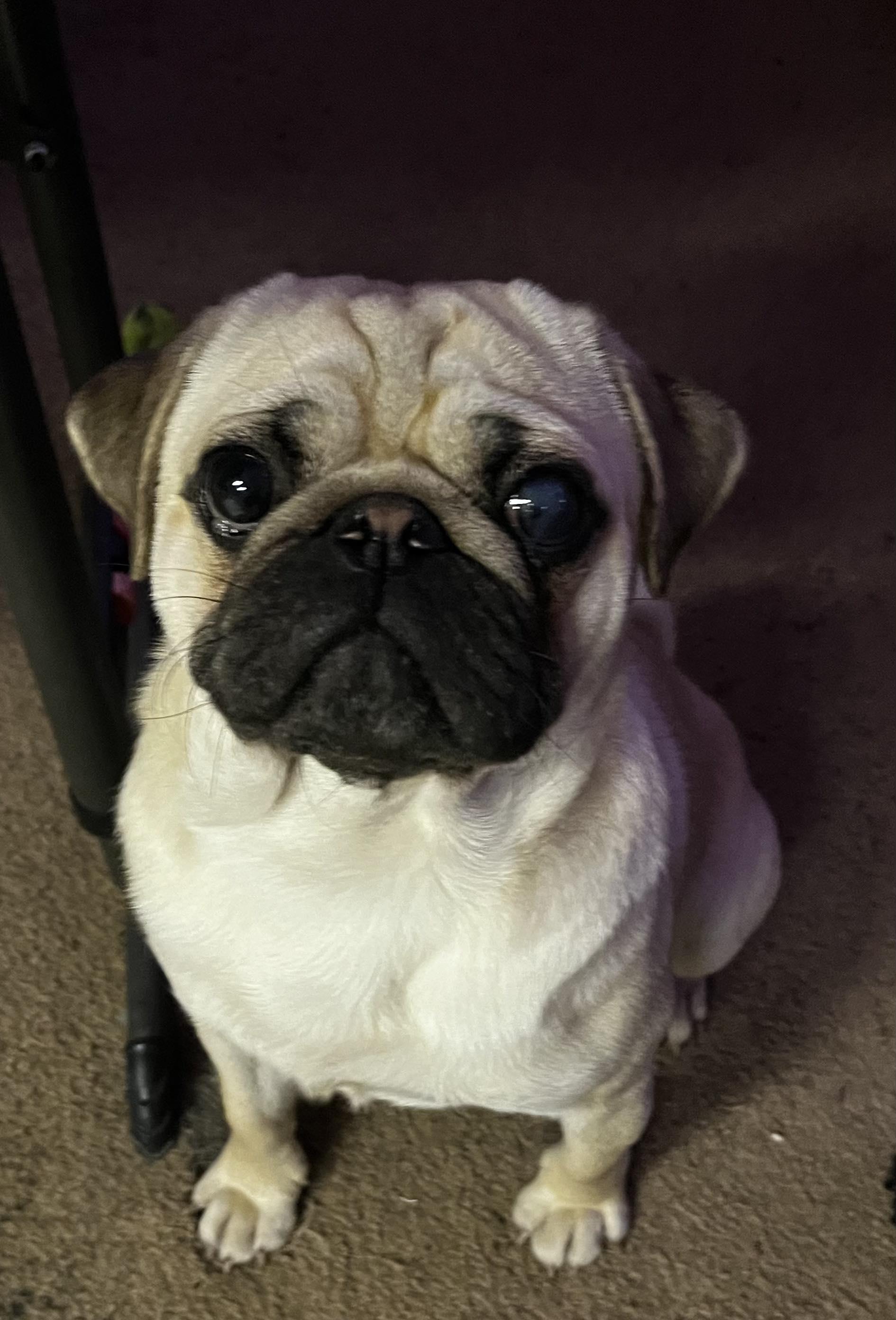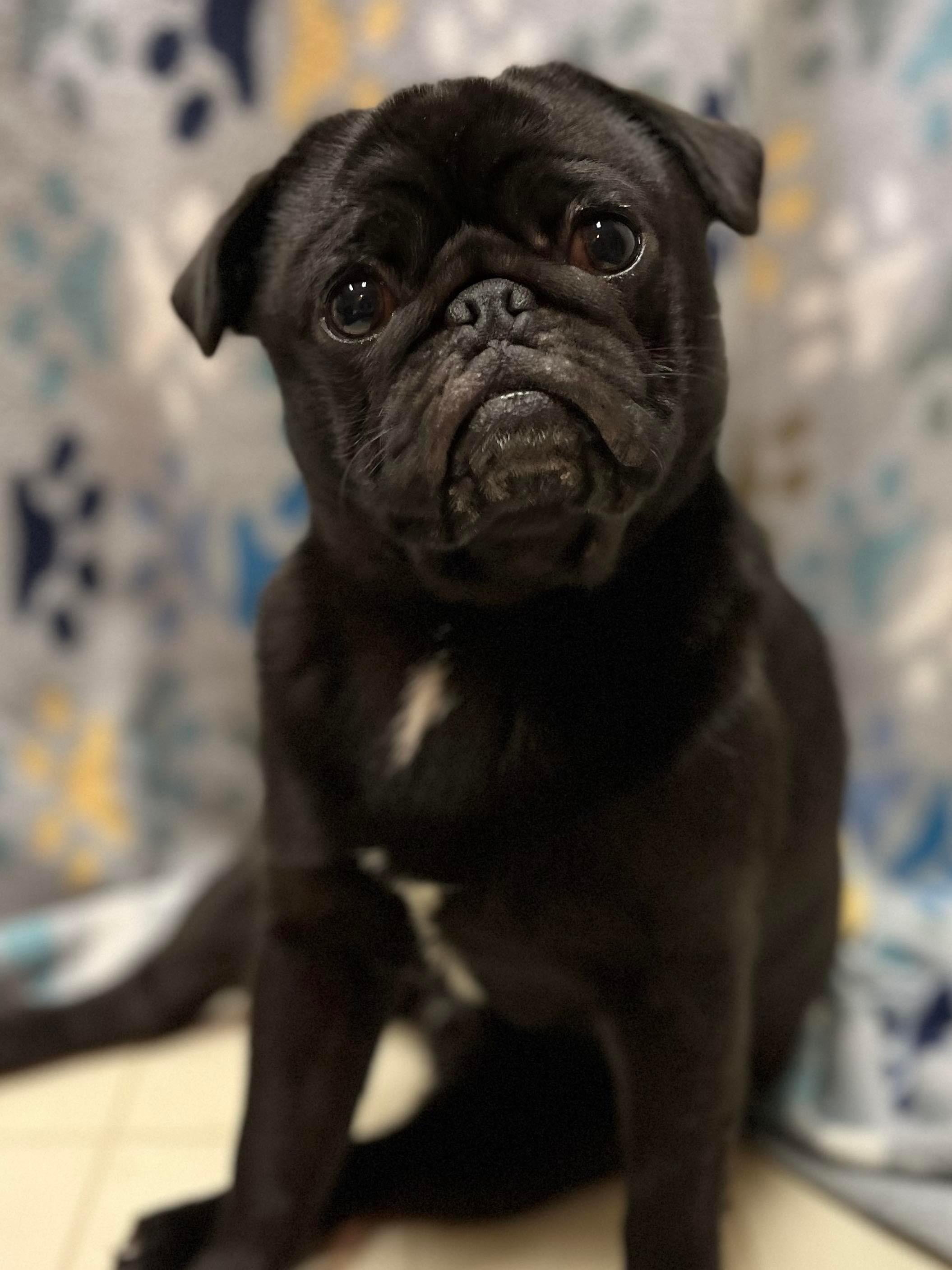 Elora is a female Pug. Carefully selected as a great representative of her breed, Kayte decided to make her part of their program. Kayte has passed Good Dog’s screening process, which involved a review of their breeding practices, environment, and the mental and physical health of their dogs.
