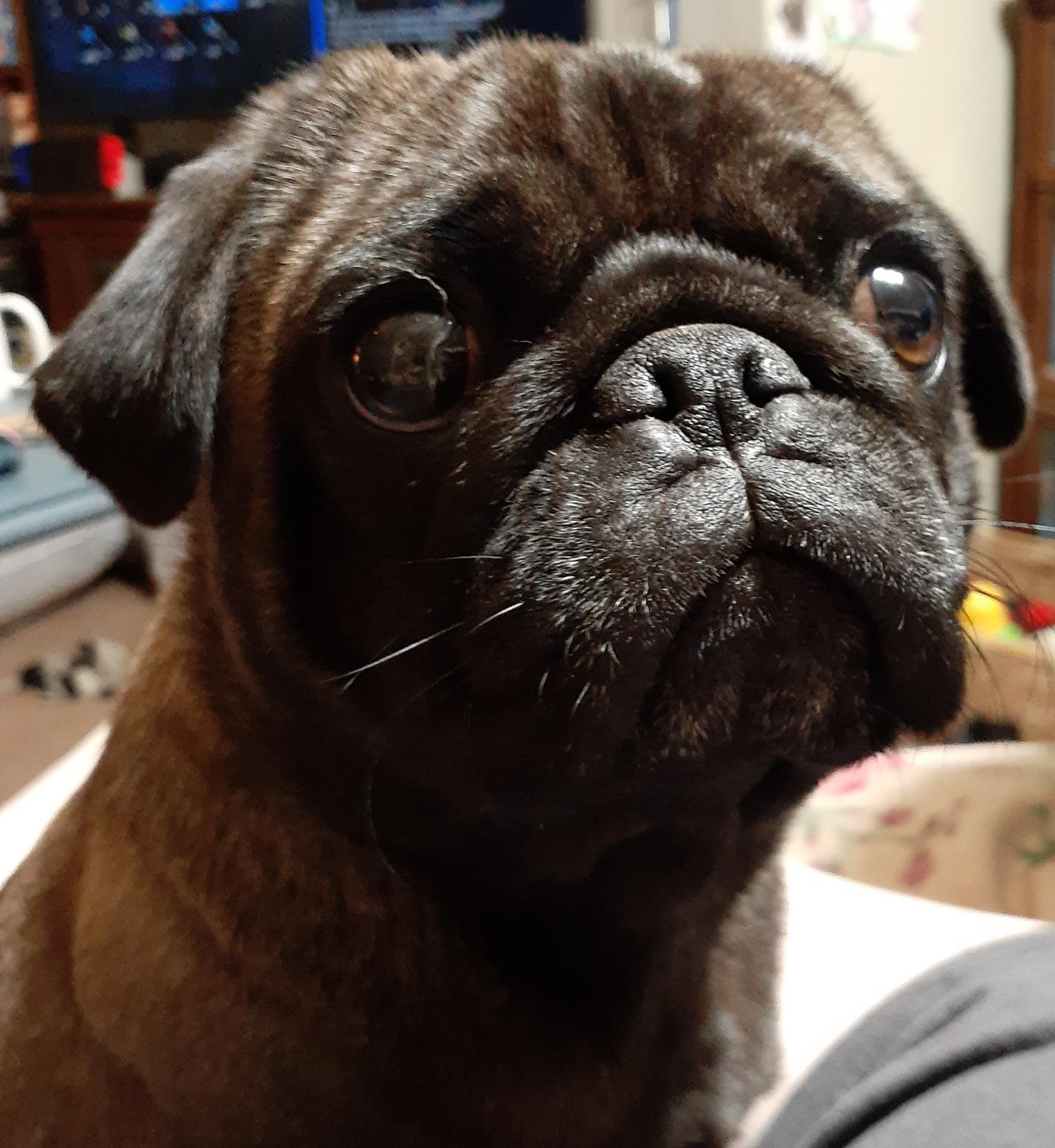 Lila is the most gentle pug we have ever owned. She is shy and refined and contrarily extremely stubborn. It took her a couple days but she is a fantastic mama. She is also completely attached to my husband and myself.