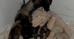 Our pups are born into children's cribs and live the first 6 weeks of their lives off the ground. The final 2-4 weeks, they are acclimated to higher traffic areas to prepare them for their new homes.