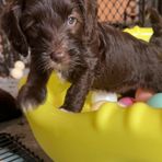 Our Rockstar litter is rocking the early training including outside potty and each puppy is sleeping in individual crate overnight without accidents (yay). They are truly a sweet little bunch and have a balance of chill with confident curiosity which makes them simply a dream.