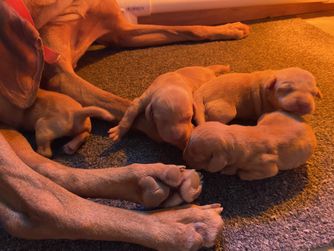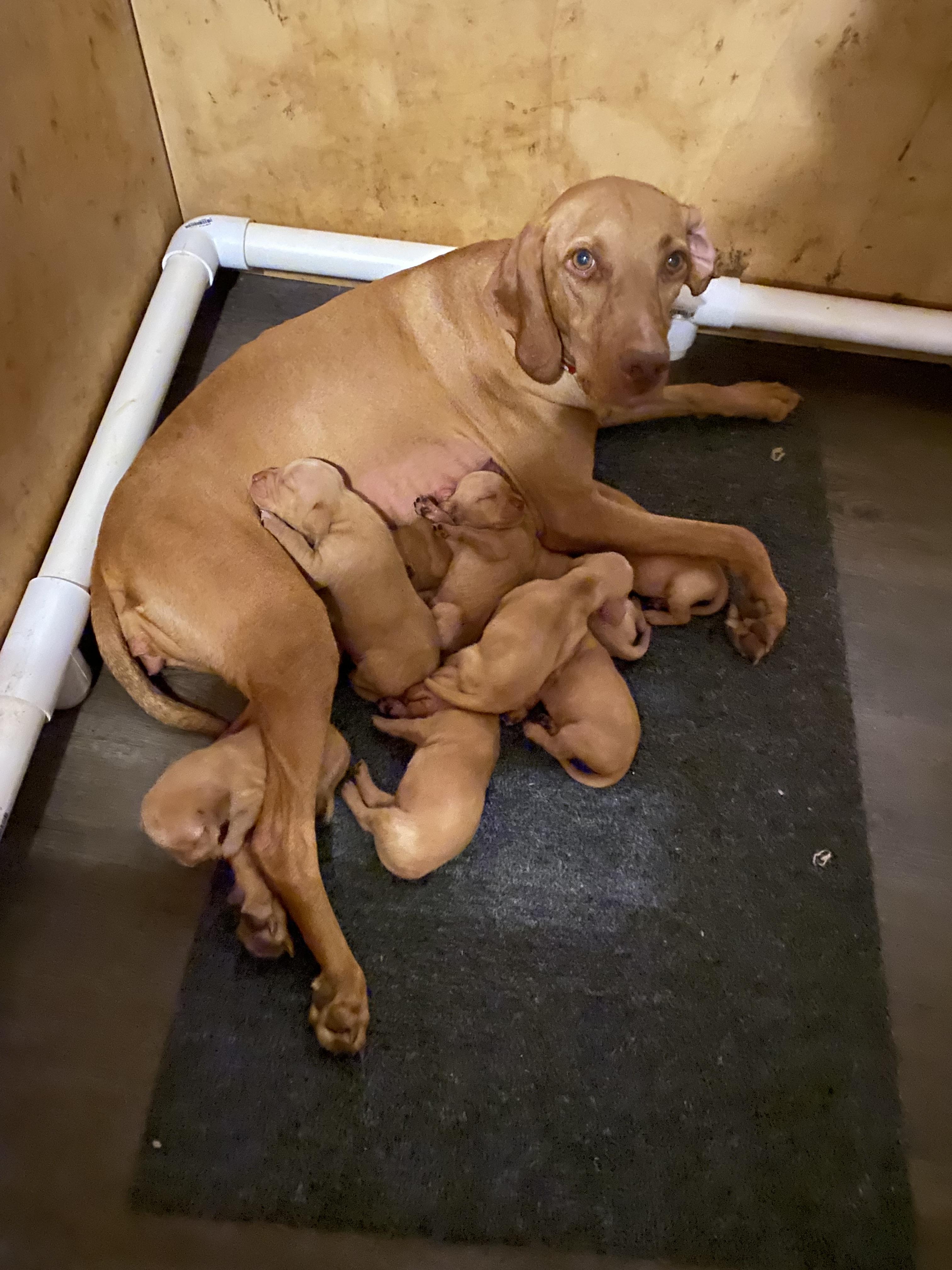We pay close attention to every aspect of breeding the ideal vizsla. Selecting the best of the best to breed to. Proving our pups through competition. Monitoring for health concerns. Providing the best nutrition. Raising pups in our home with tons of socialization. Testing pups to understand individual personalities. Pairing individuals with ideal homes. Providing guidance to new pup parents!