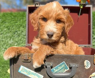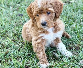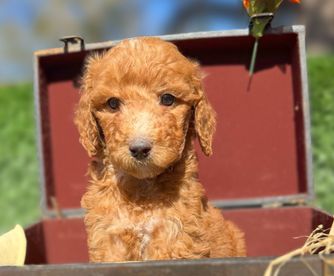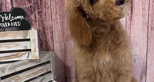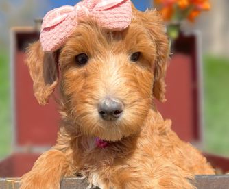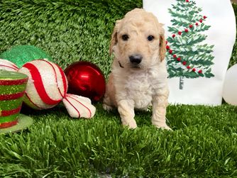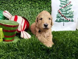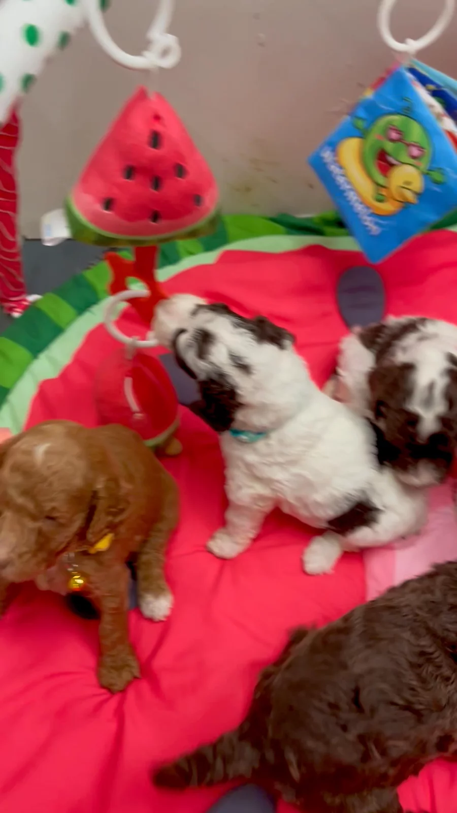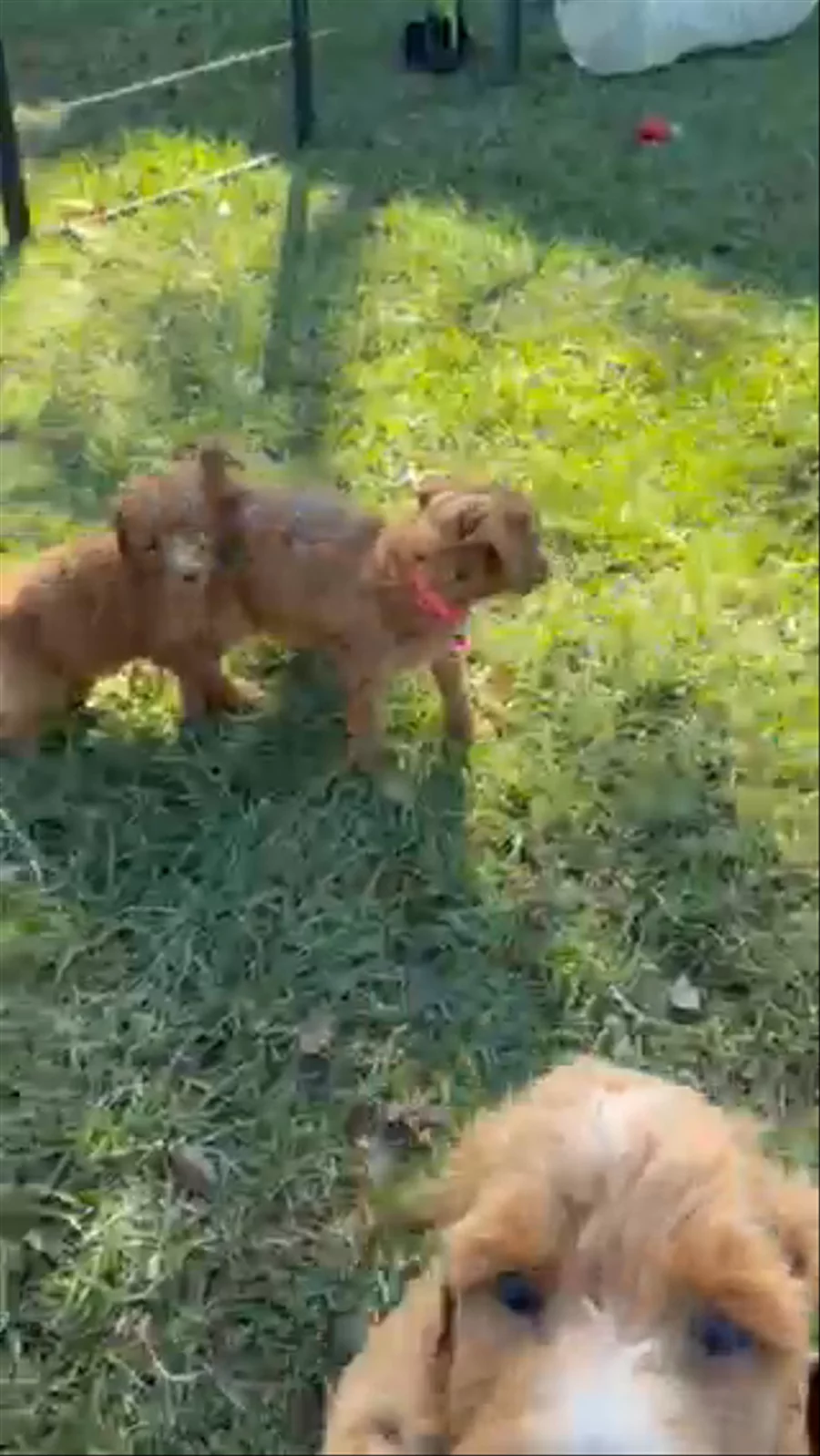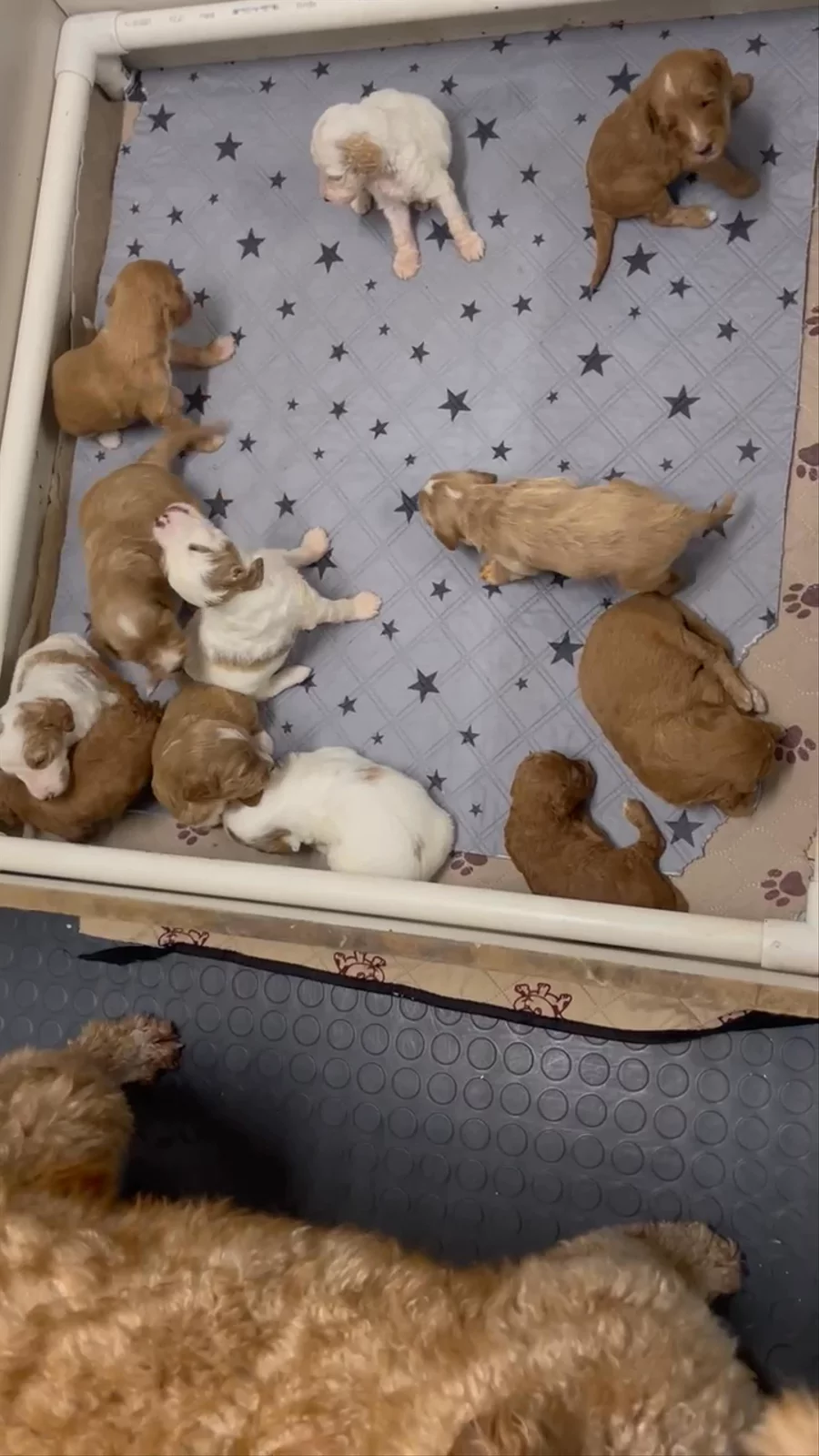 Scarlet and Finley’s litter of Goldendoodles just turned 3 weeks old! They are walking around and finding their voices! So cute!!! They will be small, around 30-35 lbs full grown!