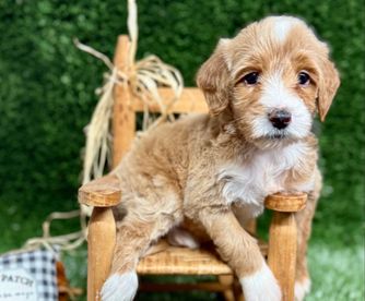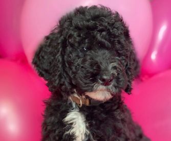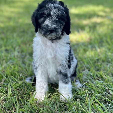 Goldendoodle puppies include cream, apricot, red, black, phantom, merle, and parti. Poodle puppies include sable, black, blue, and parti. Sheepadoodle puppies include gray and white, blue gray, and black and white. Pyredoodle puppies are brown. Colors will vary depending on the parent dogs.