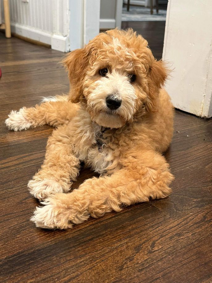 Tom is a male Goldendoodle. Carefully selected as a great representative of his breed, Karen decided to make him part of their program. Karen has passed Good Dog’s screening process, which involved a review of their breeding practices, environment, and the mental and physical health of their dogs.
