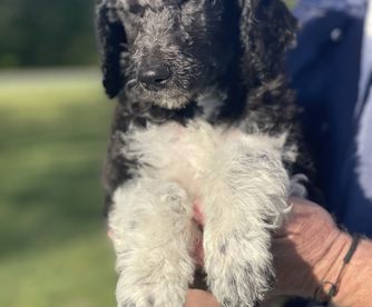 “The price includes health record, worming at 2,4,6, & 8 weeks, 1st Vaccination at 6 weeks, dew claw removal, tail dock on poodles, microchip, AKC registration on poodles, CKC on Sheepadoodles. All puppies are not the same price, and the deposit allows you to pick your puppy then or wait until they are 4 weeks old. It is non refundable and is deducted from the total amount.”