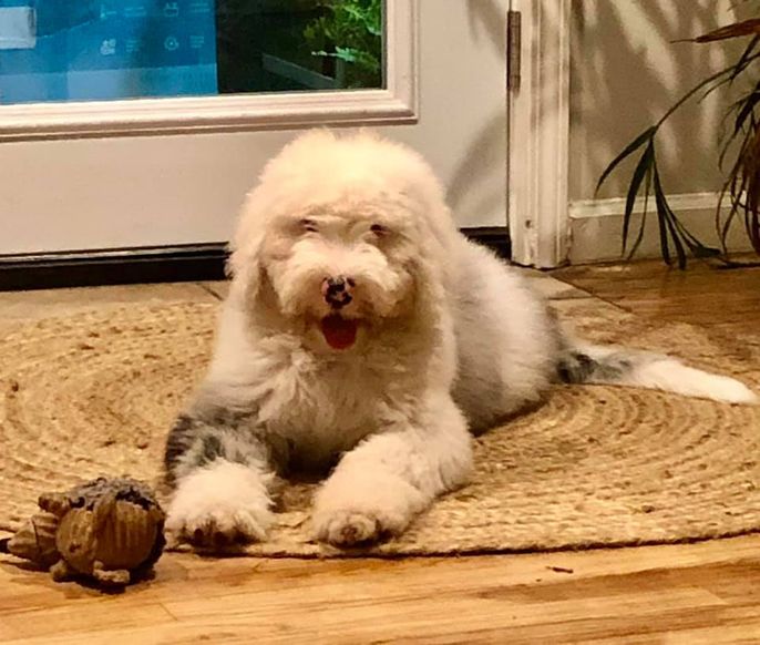 Tuck is a male Sheepadoodle. Carefully selected as a great representative of his breed, Karen decided to make him part of their program. Karen has passed Good Dog’s screening process, which involved a review of their breeding practices, environment, and the mental and physical health of their dogs.