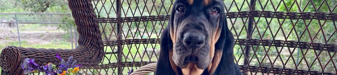 Spiller is a male Bloodhound. Carefully selected as a great representative of his breed, Jamie decided to make him part of their program. Jamie has passed Good Dog’s screening process, which involved a review of their breeding practices, environment, and the mental and physical health of their dogs.