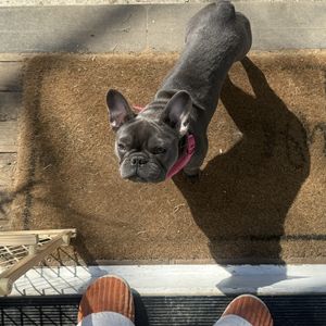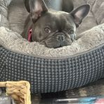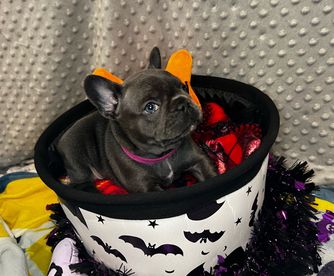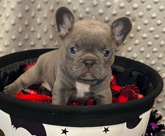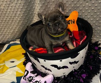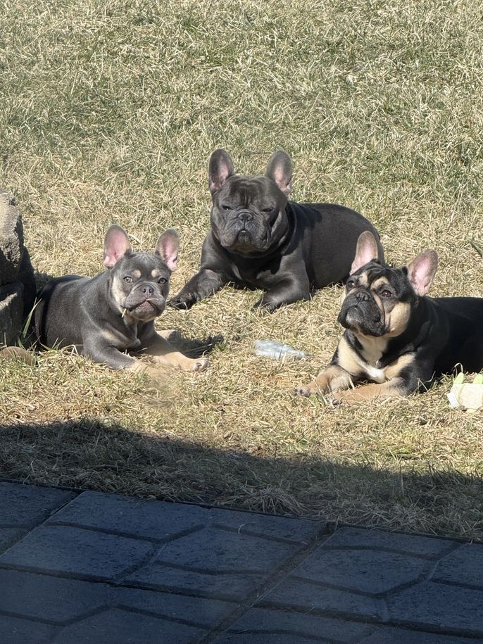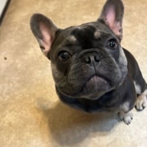 Nezzy is our newest addition to K&J Frenchies! She’s a gorgeous blue fawn sable. She’s got such a fun and spunky personality! Great with kids & our other dogs. Very well mannered.