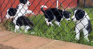 Our Border Collie puppies are tri-color. Rottweiler puppies are black and mahogany. Colors will vary depending on the parent dogs.