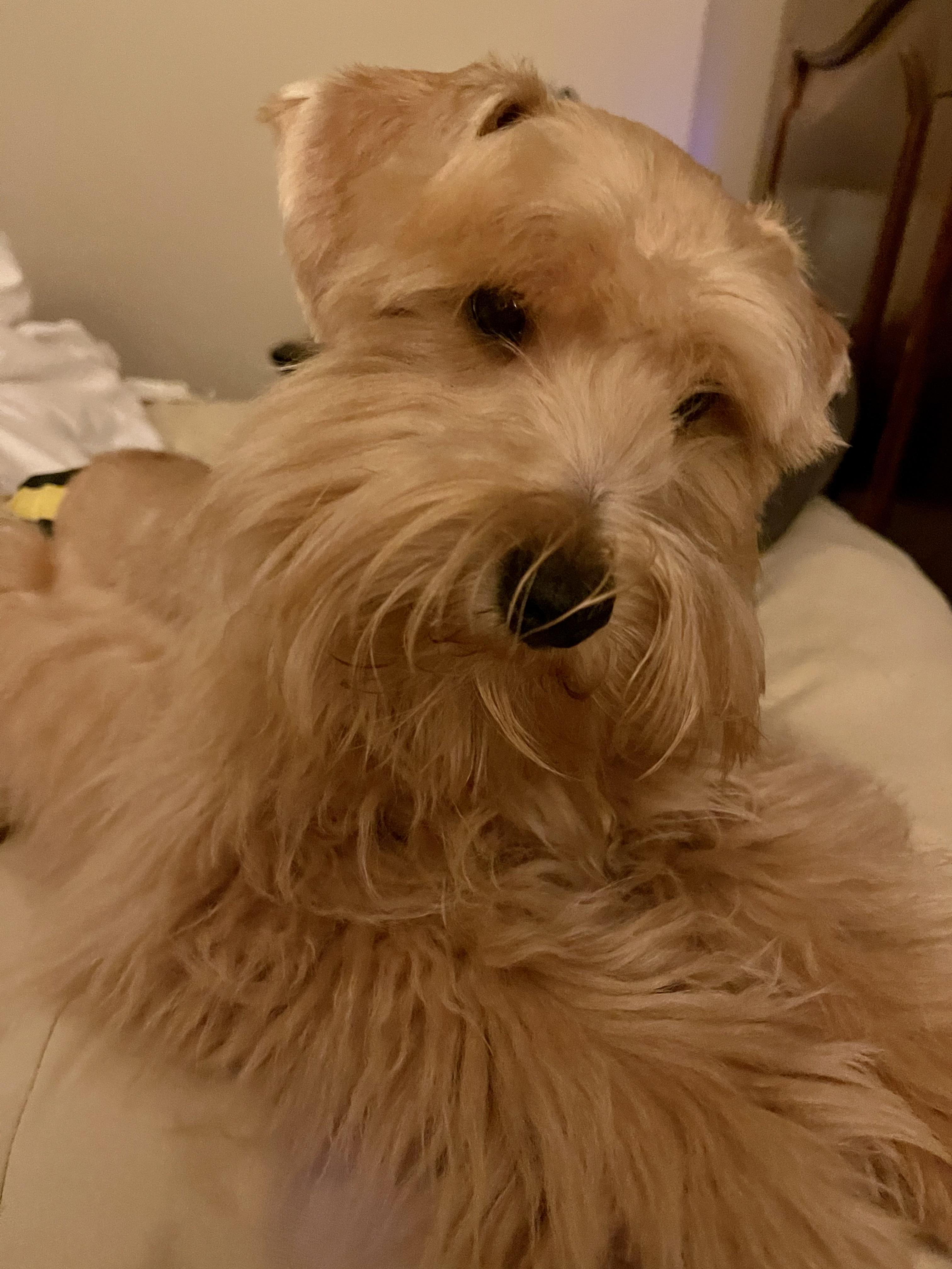 Whiskey is a beautiful red wheaten. He loves to play fetch as long as you are willing to throw the toys. He always produces the thickest fur on his puppies. Whiskey is AKC registered and cross registered to CKC also.