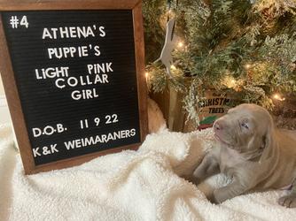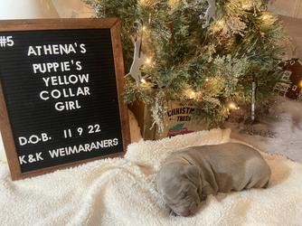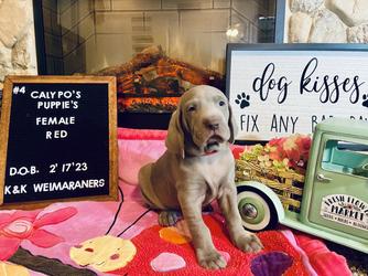 I feel so Blessed to have found Kellie. OUr previous experience with a "Presumed" Breeder was less than Satisfactory. We ended up with a sick puppy and were devastated., Kellie is a well known Breeder of Weimeraners is very knowledgeable about the Breed of Dogs. We process of purchasing our puppy from Kellie was very smooth. Kellie kept us updated on how our puppy was doing and send us updated pictures. We had proof from the Vet that the puppy was healthy . I would recommended Kellie to anyone wanting a Weimeraner. There is nothing like a piece of mind knowing your puppy is taken care of and treated with love. Th ank you Kellie. Our puppy is so Beautiful and healthy. I would definitely purchase my next puppy from Kellie.
