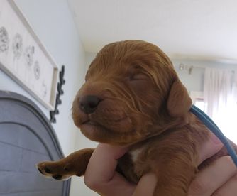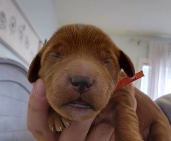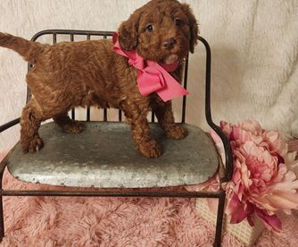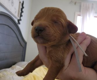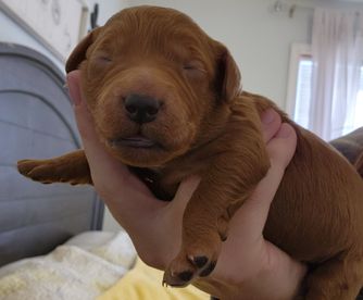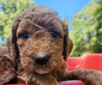 Goldendoodle puppies are red. Colors will vary depending on the parent dogs.