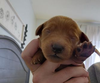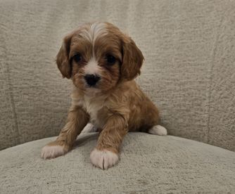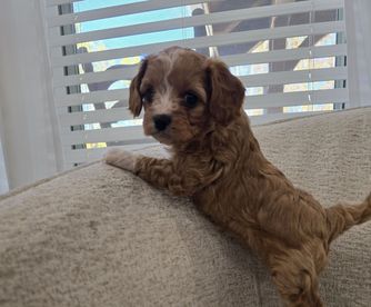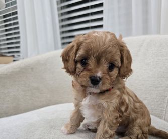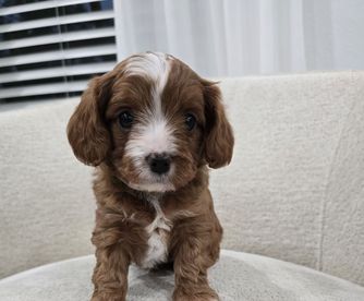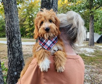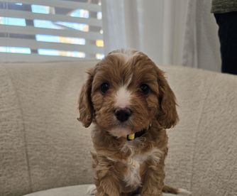 Minnie is a female Cavapoo. Carefully selected as a great representative of her breed, Kylee decided to make her part of their program. Kylee has passed Good Dog’s screening process, which involved a review of their breeding practices, environment, and the mental and physical health of their dogs.