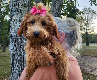 Mirabelle is a female Goldendoodle. Carefully selected as a great representative of her breed, Kylee decided to make her part of their program. Kylee has passed Good Dog’s screening process, which involved a review of their breeding practices, environment, and the mental and physical health of their dogs.