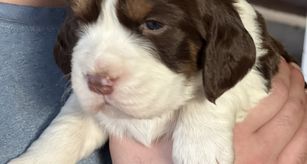 Our puppies include liver white and tan and liver and white. Colors will vary depending on the parent dogs.