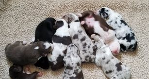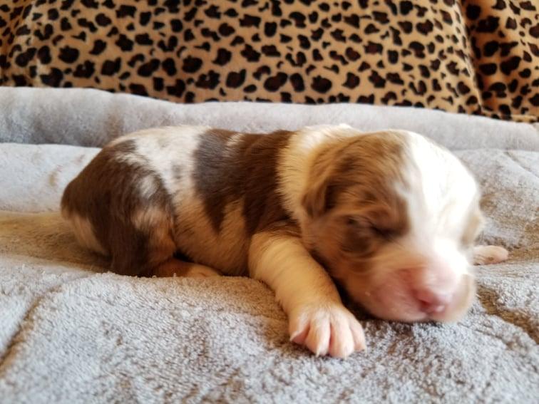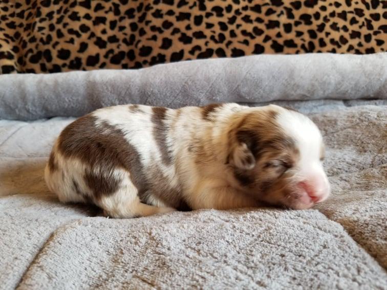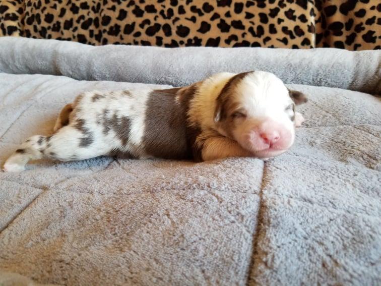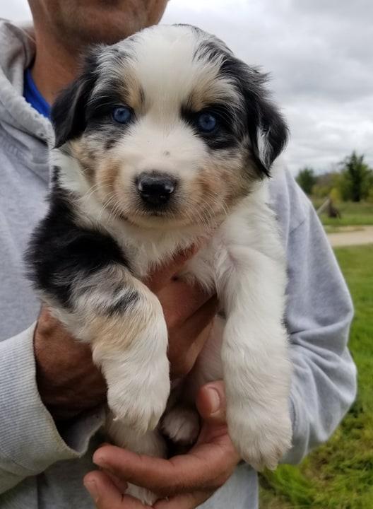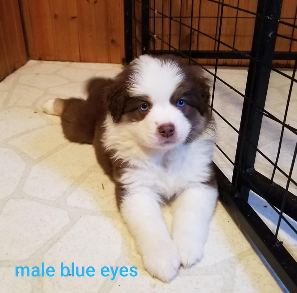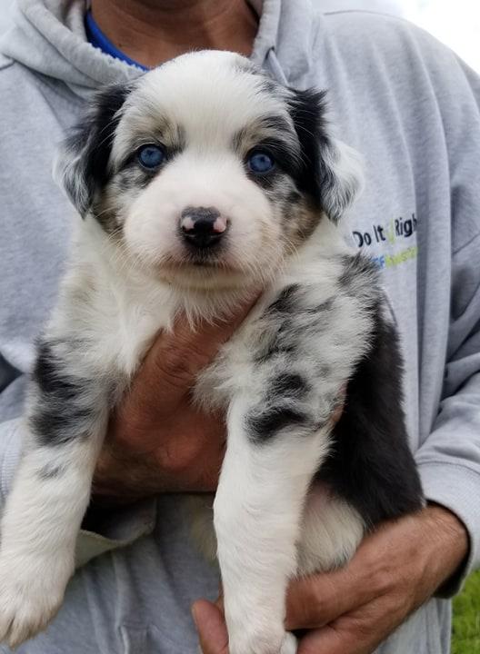 Our puppies include blue merle and red merle. Colors will vary depending on the parent dogs.