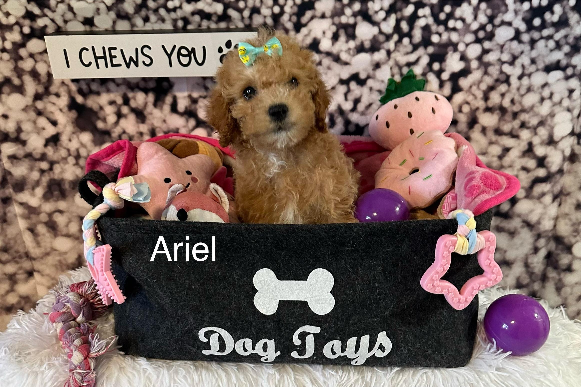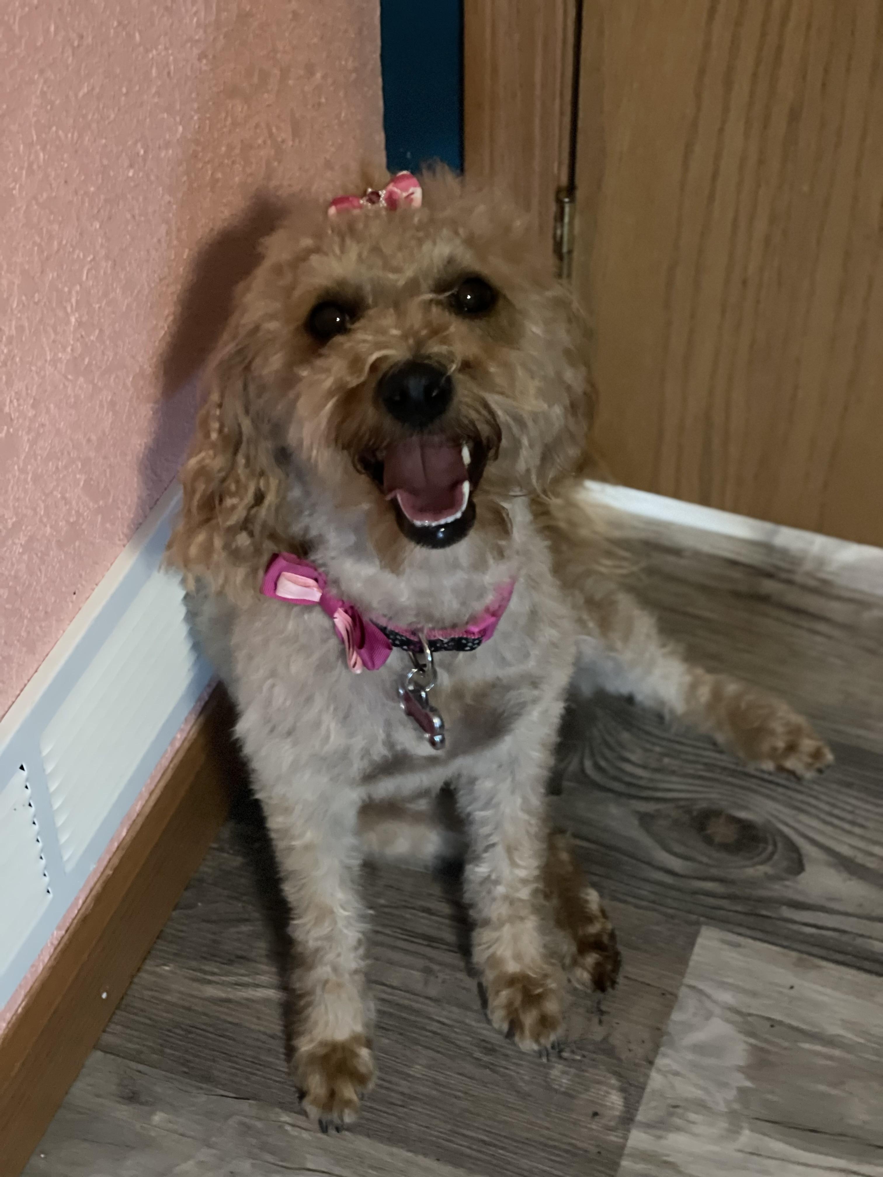 “Hi! Our pups are F1BB miniature labradoodles. They come UTD on all shots and are microchipped.