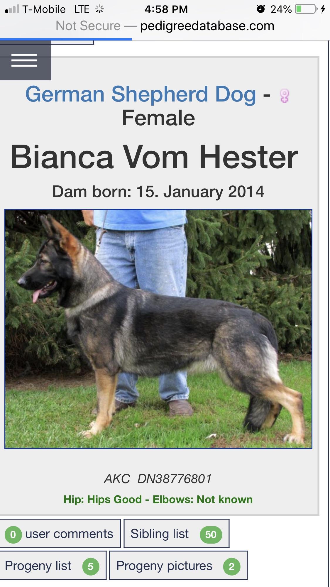 Kleiner Bach German Shepherds reports to performing the health tests below on their breeding dogs. Ask your breeder about the tests performed on the parents of your litter. Learn more about health testing for German Shepherds.