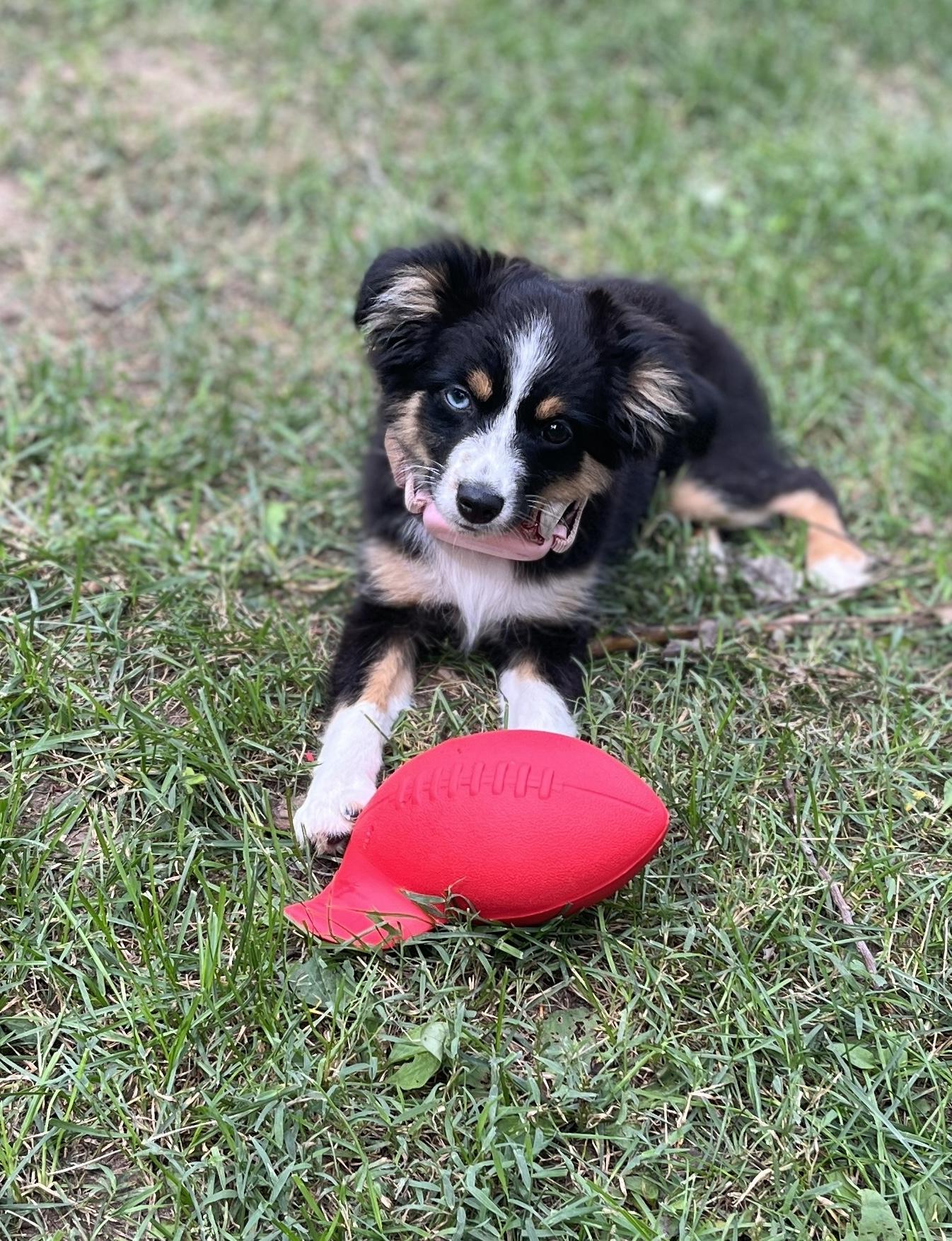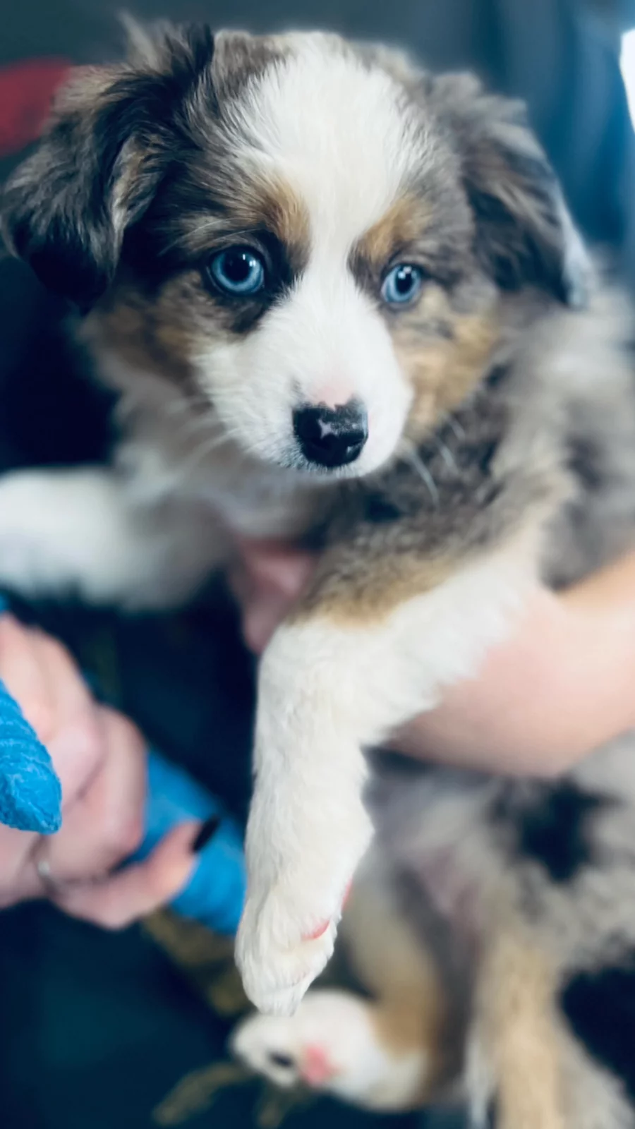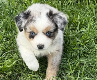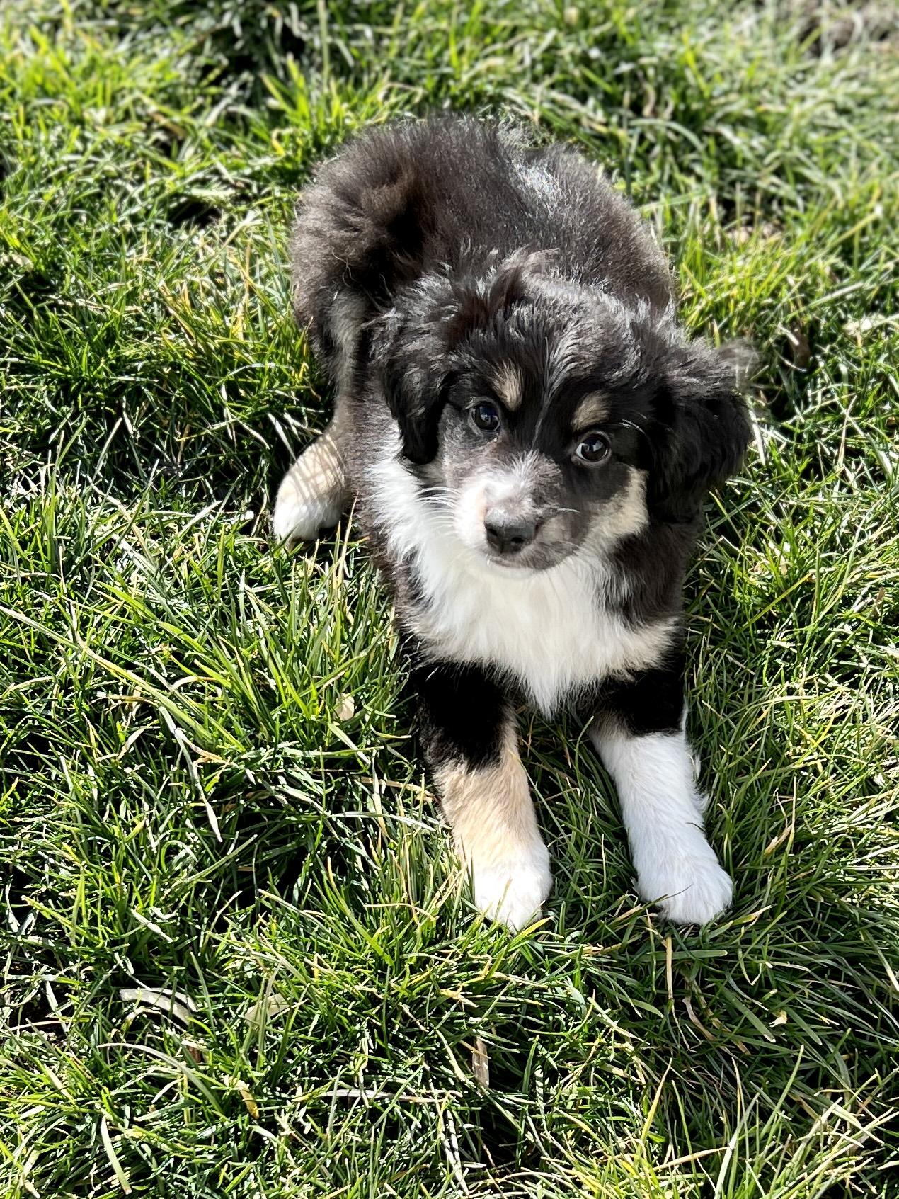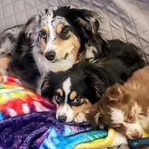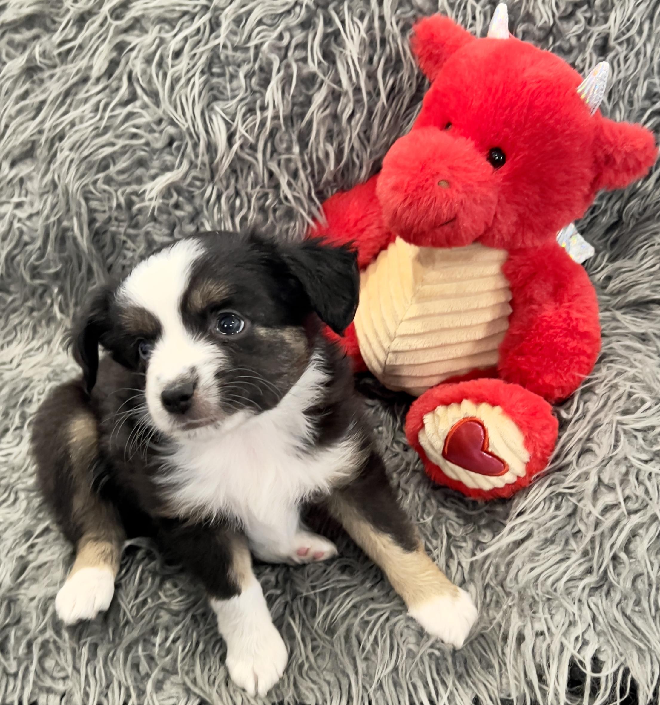 Our puppies include black tri, blue merle, red merle, and red tri. Colors will vary depending on the parent dogs.