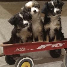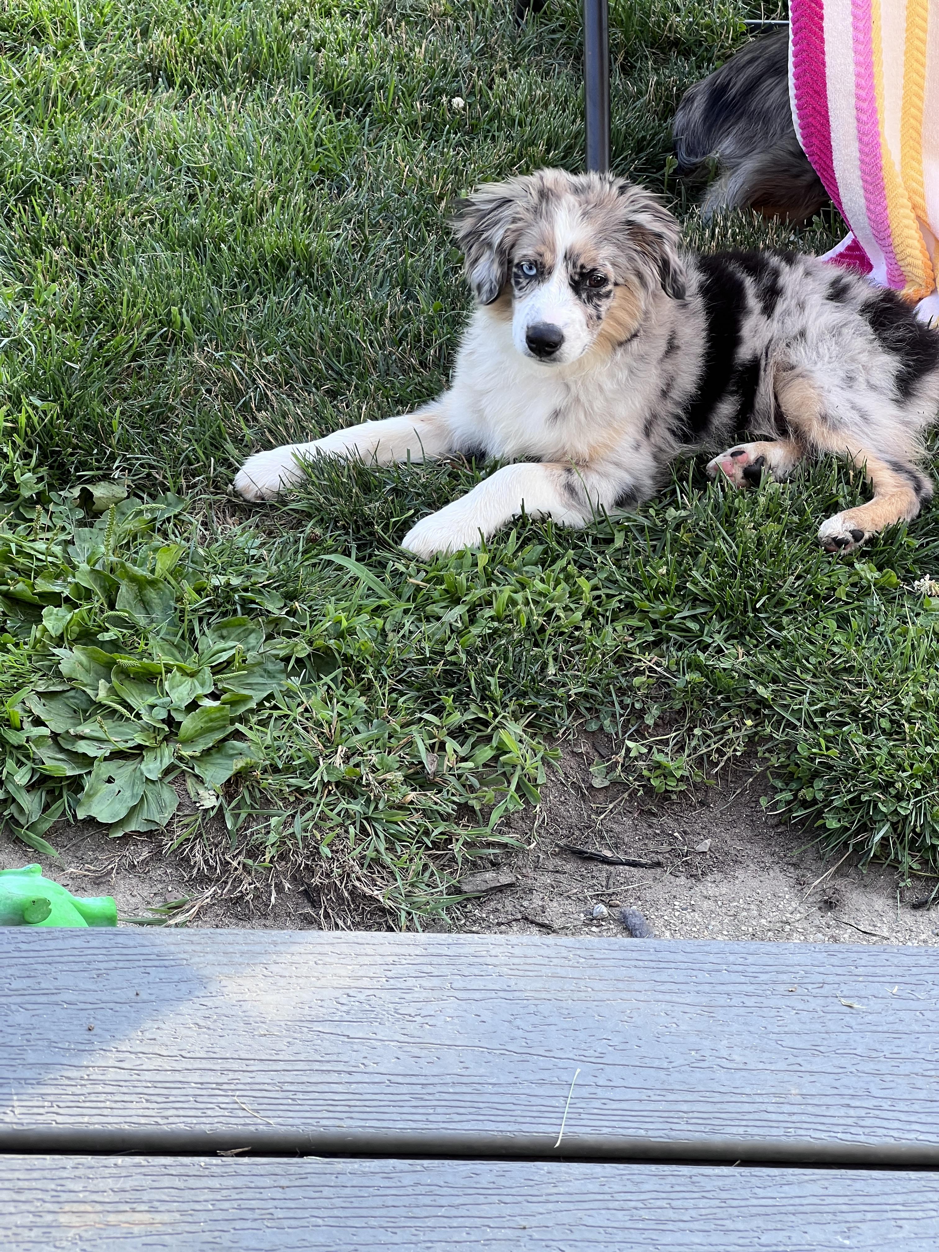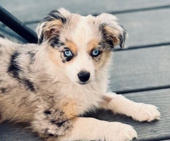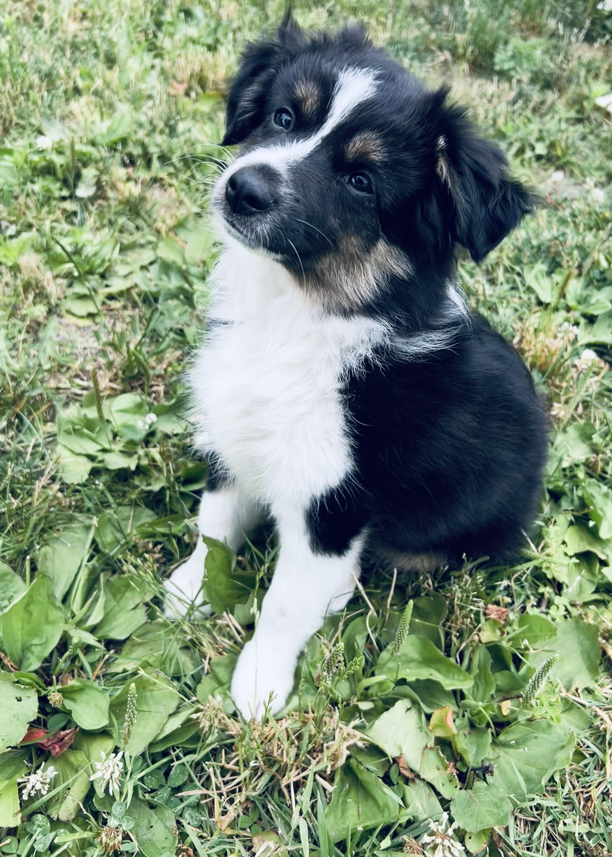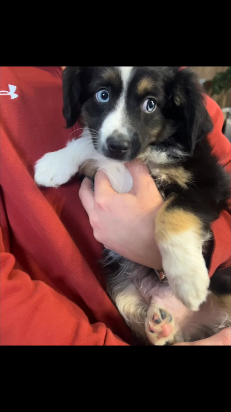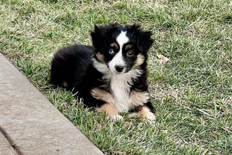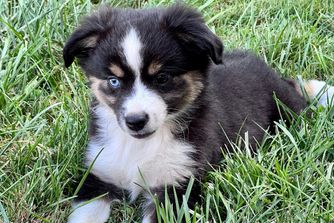 Our puppies include black tri, blue merle, red merle, and red tri. Colors will vary depending on the parent dogs.