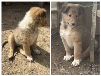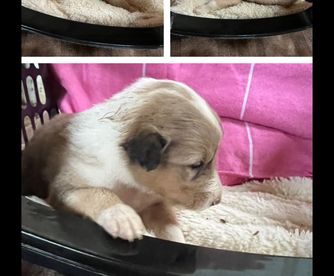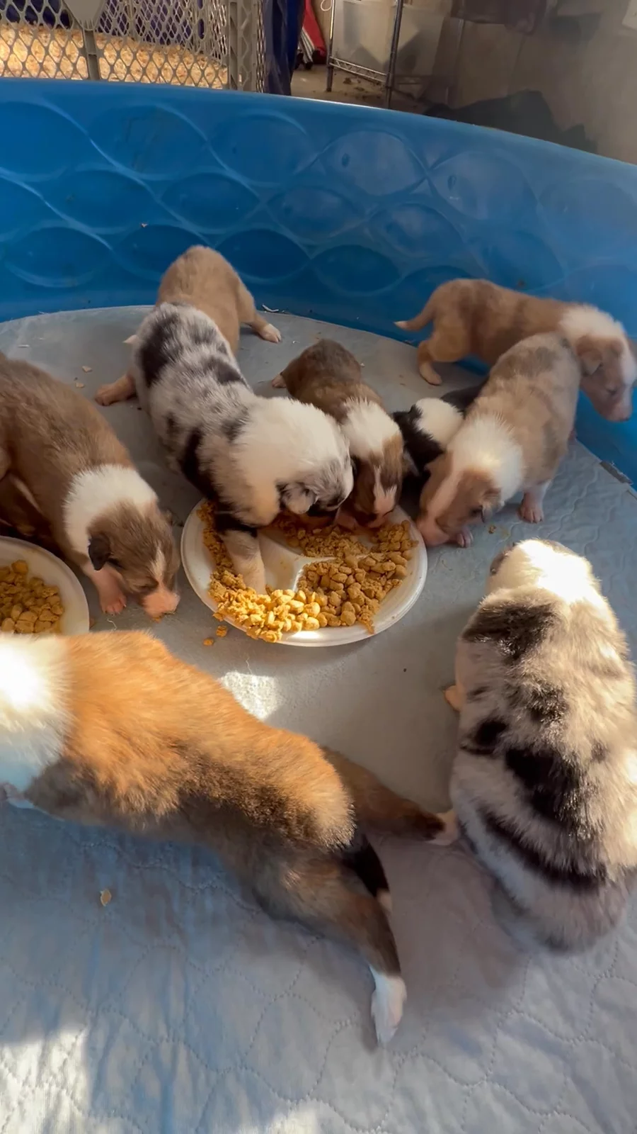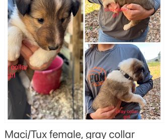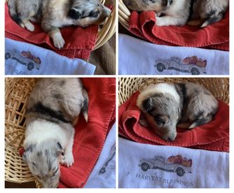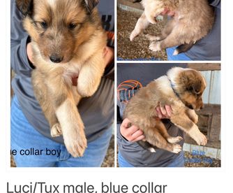 Our puppies include sable merle, sable, black white and tan, and blue merle. Colors will vary depending on the parent dogs.