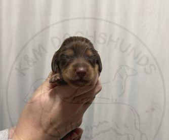 I'm Hannah N., the breeder behind K&M Dachshunds located in Rockton, IL. We do our best to socialize and acclimate each litter so we’re able to offer all-around healthy and well-mannered puppies! We are dedicated to always providing our buyers and our puppies with a positive experience, which includes remaining committed to responsible practices when it comes to breeding, training, and rehoming our puppies.