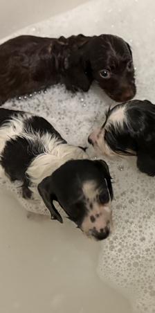 My fiancé and I had the most amazing experience purchasing our miniature dachshund puppy from Hannah at Royalty Grove Dachshunds! From our very first interaction, Hannah was so kind, patient, and easy to work with. She really cares about her puppies and takes the time to get to know potential owners to ensure her dogs go to good homes. When we visited to meet the puppies, we fell in love with our little girl right away. Hannah let us interact with all the puppies and provided great information about each one's personality. It was clear she loves what she does and puts a lot of care into breeding happy, healthy dachshunds. Going through the application and purchase process with Hannah was smooth and stress-free. She walked us through everything step-by-step. Our little pup was up to date on shots and vet checks before he came home with us. We couldn't be happier with our experience and our precious new family member! The whole process from start to finish was amazing. Hannah runs a top-notch operation at Royalty Grove Dachshunds. We'd highly recommend her to anyone looking for a well-bred miniature dachshund puppy. Thanks Hannah!