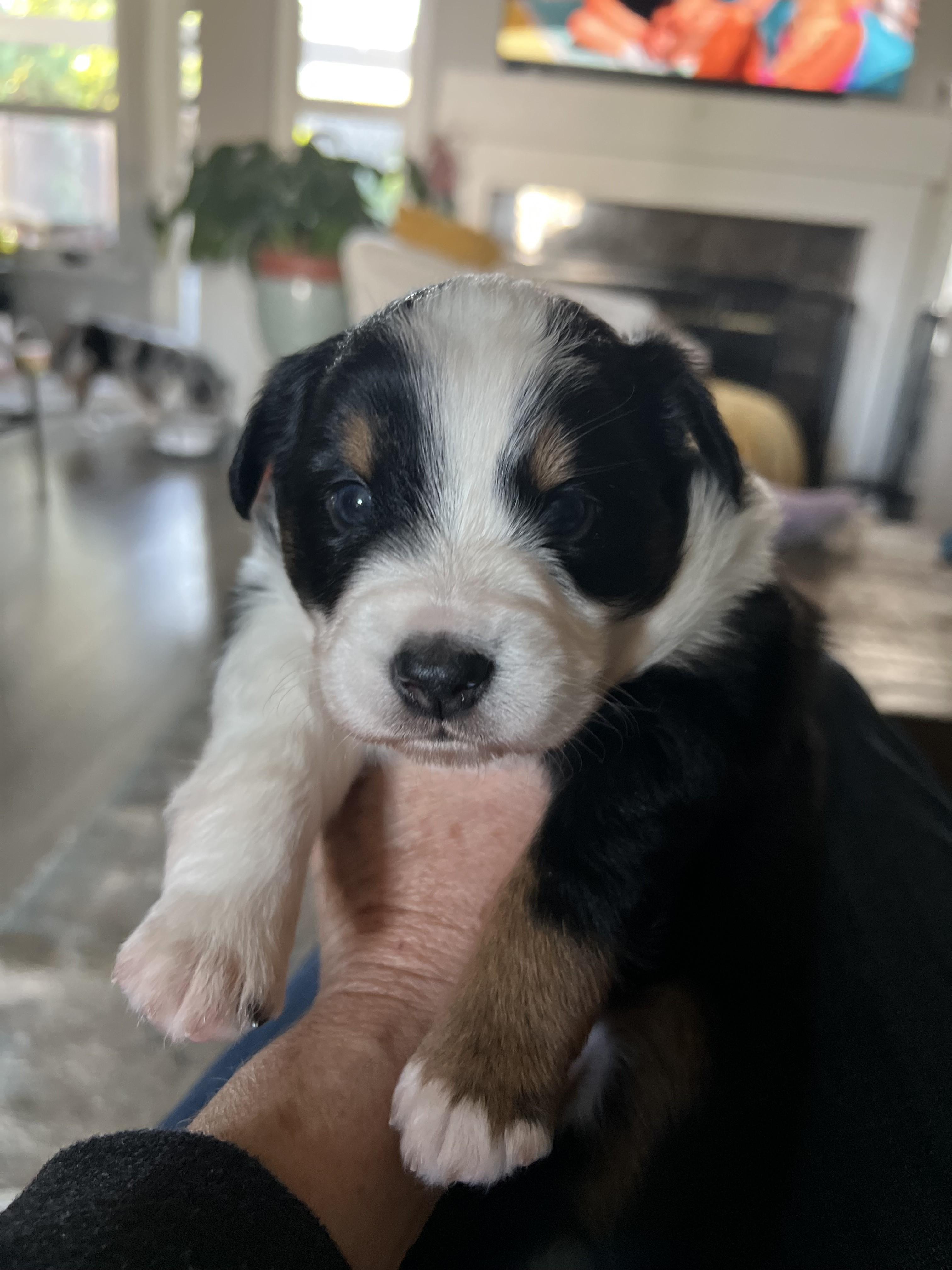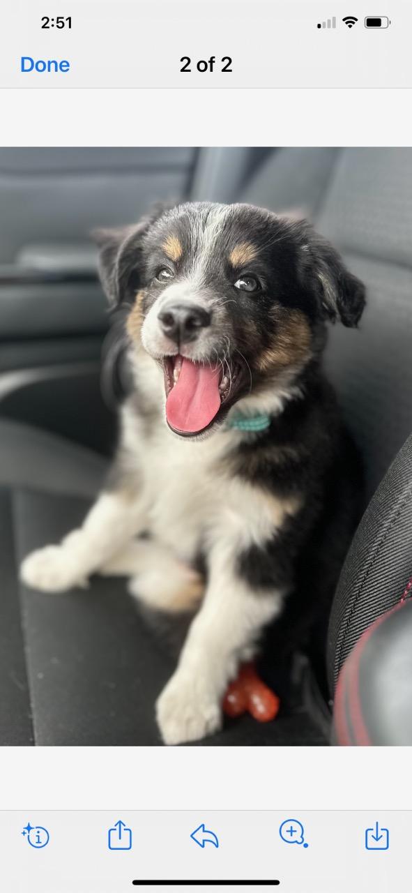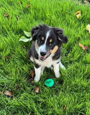 Our Australian Shepherd puppies are black tri-color. Miniature Australian Shepherd puppies include blue merle, black tri, red tri, and red merle. Colors will vary depending on the parent dogs.