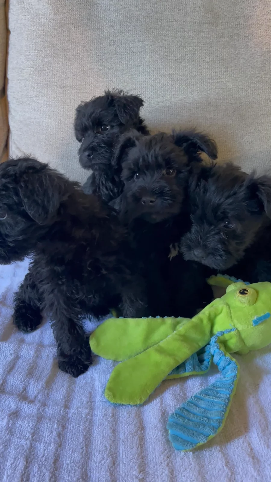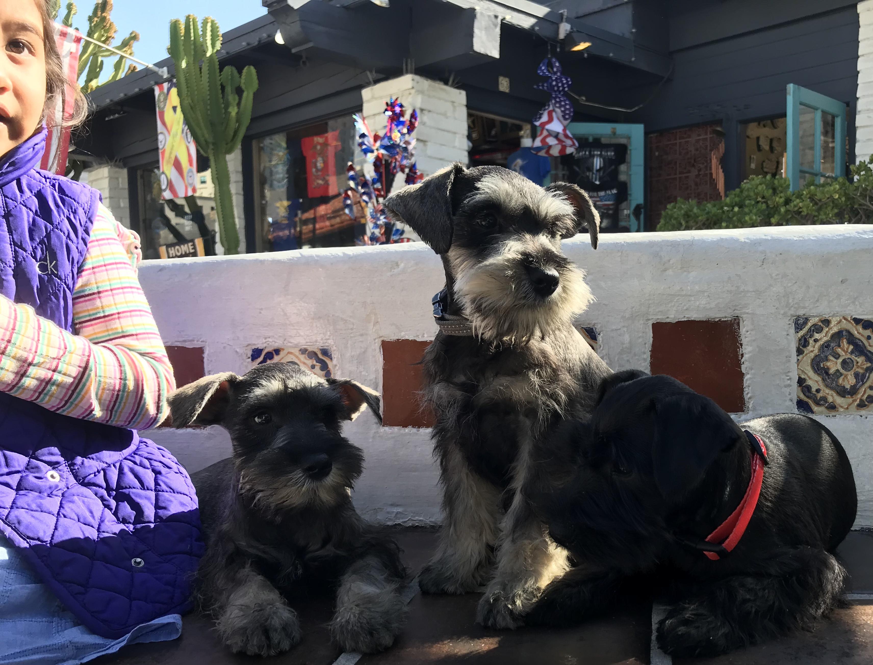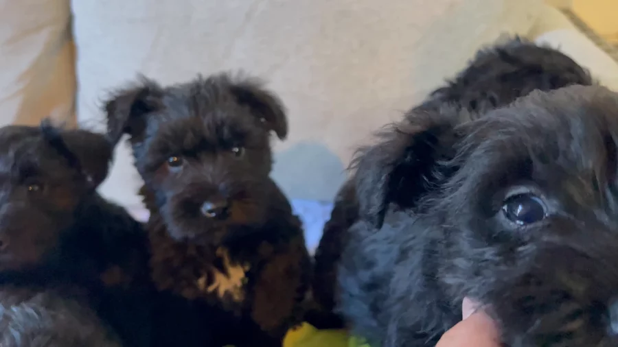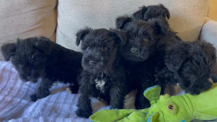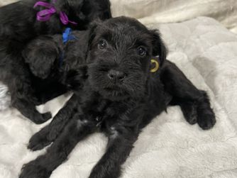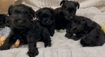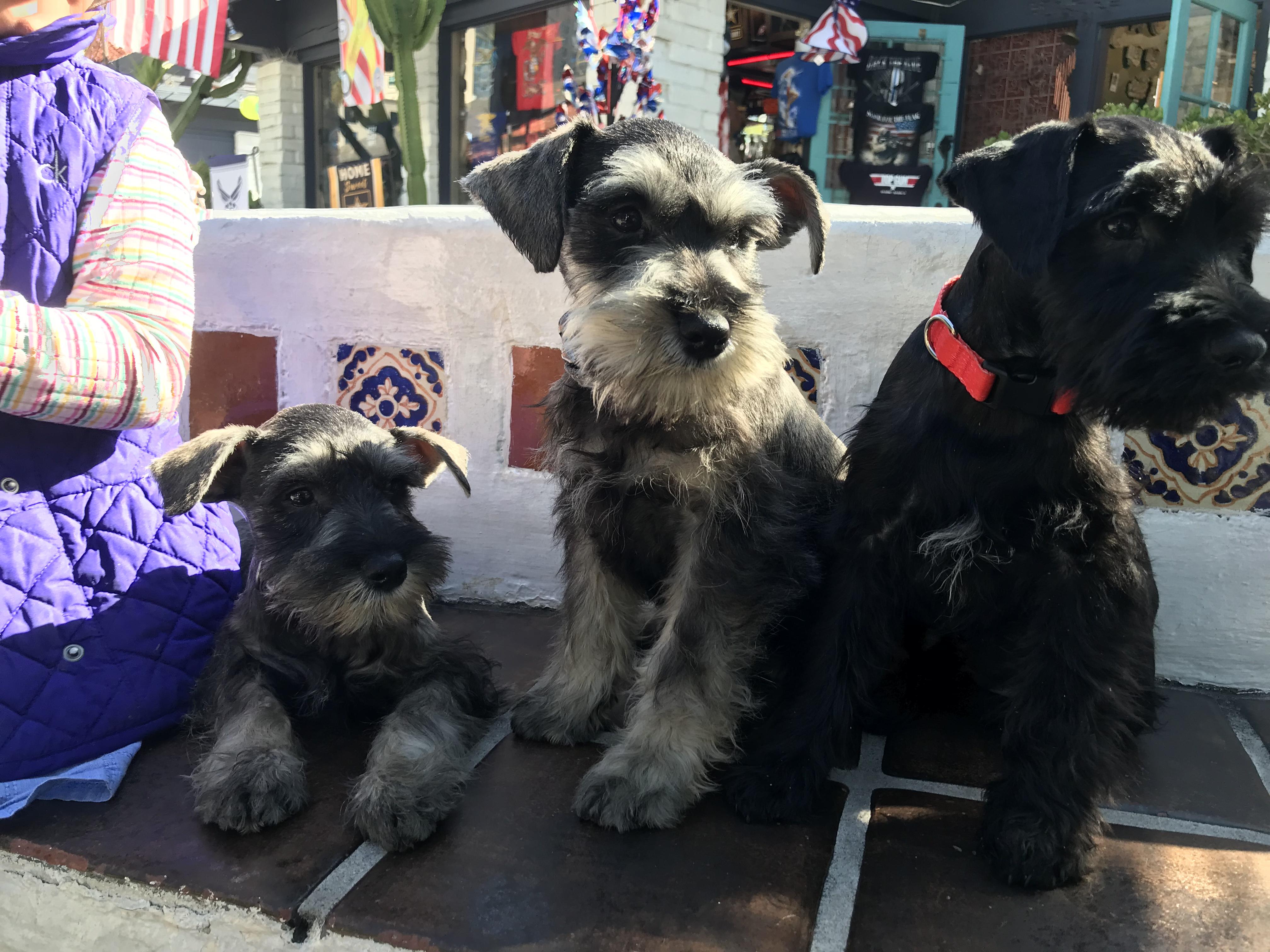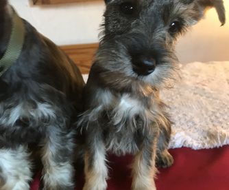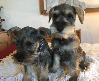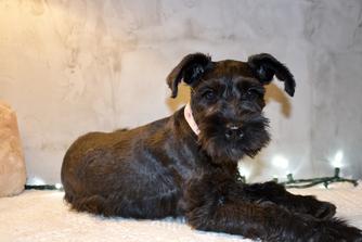 Our puppies include salt and pepper, black and silver, and black. Colors will vary depending on the parent dogs.