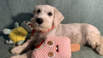 We welcomed Professor into our family on June 1st. Ever since, he’s been such a loving, sweet, playful and loyal dog. He’s always cuddly around us especially our toddler and he is very nice around other dogs and humans. I love how he’s hypoallergenic and a chill dog overall. Working with Sergio was so easy from beginning to the end. He was kind , trust worthy and very knowledgeable of the miniature schnauzer breed. My family and I couldn’t be any happier with welcoming Professor into our lives! He’s the perfect dog.