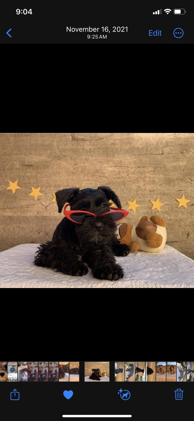 Sergio is absolutely amazing! He answered any and all questions I had about what to do when bringing your puppy home, so I felt very prepared when we picked up our Luigi boy! Gave me a timeline on when final vaccines need to happen, told me what food to buy and how often he needs to eat and he came with a cute little sock monkey with mom and dad scent on it. 10/10 will recommend to anyone whose looking for a sweet schnauzer! Thank you Sergio!!!