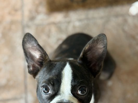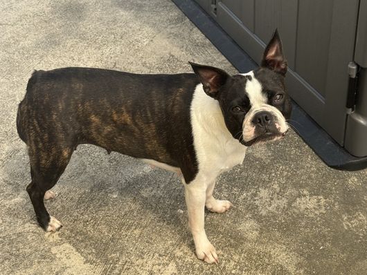 Kali is a female Boston Terrier. Carefully selected as a great representative of her breed, Natalie decided to make her part of their program. Natalie has passed Good Dog’s screening process, which involved a review of their breeding practices, environment, and the mental and physical health of their dogs.