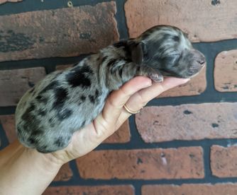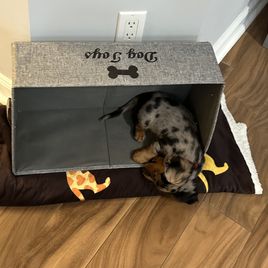 Roxie is a female Dachshund. Carefully selected as a great representative of her breed, Gabriella decided to make her part of their program. Gabriella has passed Good Dog’s screening process, which involved a review of their breeding practices, environment, and the mental and physical health of their dogs.