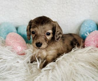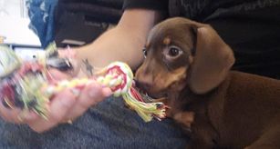 Dachshund puppies are miniature size. Sizes will vary depending on the parent dogs.