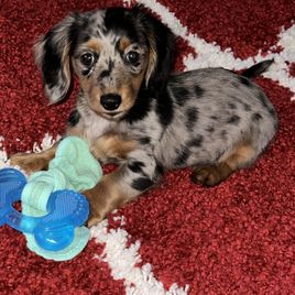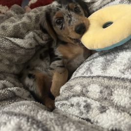 Tater is a female Dachshund. Carefully selected as a great representative of her breed, Gabriella decided to make her part of their program. Gabriella has passed Good Dog’s screening process, which involved a review of their breeding practices, environment, and the mental and physical health of their dogs.