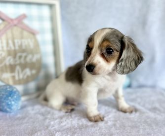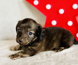 Gracie is a female Dachshund. Carefully selected as a great representative of her breed, Gabriella decided to make her part of their program. Gabriella has passed Good Dog’s screening process, which involved a review of their breeding practices, environment, and the mental and physical health of their dogs.
