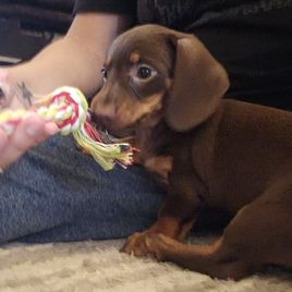 Chip is a male Dachshund. Carefully selected as a great representative of his breed, Gabriella decided to make him part of their program. Gabriella has passed Good Dog’s screening process, which involved a review of their breeding practices, environment, and the mental and physical health of their dogs.