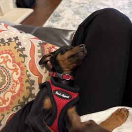 Working with Robert was very easy! He helped me find the best girl for me! I’ve had Lou for almost a month, and she’s such a good fit. She was a lover girl from the moment I met her. I’m so happy I found Robert and was able to find my min pin baby.