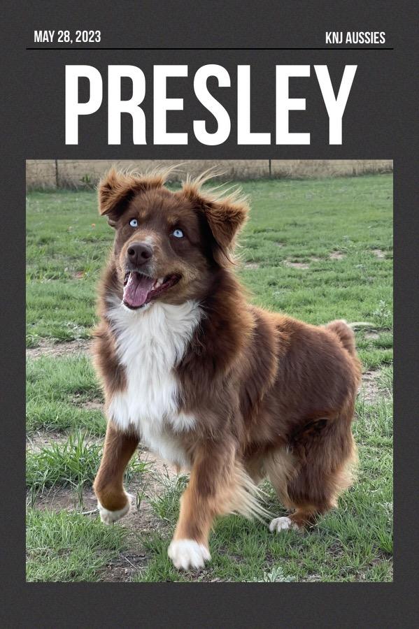 Presley is a female Miniature Australian Shepherd. Carefully selected as a great representative of her breed, Kelsea decided to make her part of their program. Kelsea has passed Good Dog’s screening process, which involved a review of their breeding practices, environment, and the mental and physical health of their dogs.