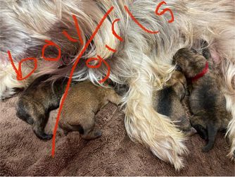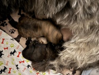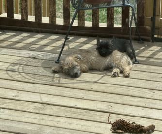 I'm Karen R., the breeder behind KNKR FURBABIES Cairn Terriers located in Winterset, IA. We are responsible breeders, certainly NOT a puppy mill, or a backyard breeder, all our females are on a healthy breeding schedule. We are overwhelmed with the number of people who are wanting our wonderful puppies. We certainly try to answer inquiries as soon as possible, while still spending the time needed to keep our dogs healthy and happy. In our dog world, "add to cart" does NOT get you a puppy! The waitlist is quite long at times and we do our best to place our puppies in homes that match their personalities and meet our requirements. We appreciate your understanding – we understand that patience is difficult when waiting for your fur-baby. All of our parents are health tested by Embark and cleared for over 201 genetic diseases and are all purebred AKC Registered Cairn Terrier pups. Your pup will come with the paperwork for a limited registered AKC Cairn Terrier, meaning as a pet/companion with no breeding rights. We love our Terriers' spunky nature and personality. We also love raising quality, healthy dogs for companions and therapy dogs. We do everything we can to produce only the best pup to live long, healthy and happy lives. Placing our pups with great families is our greatest reward.