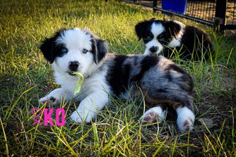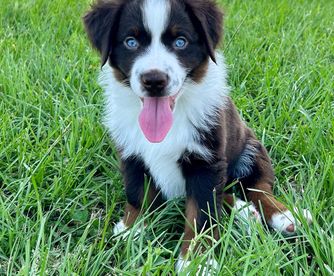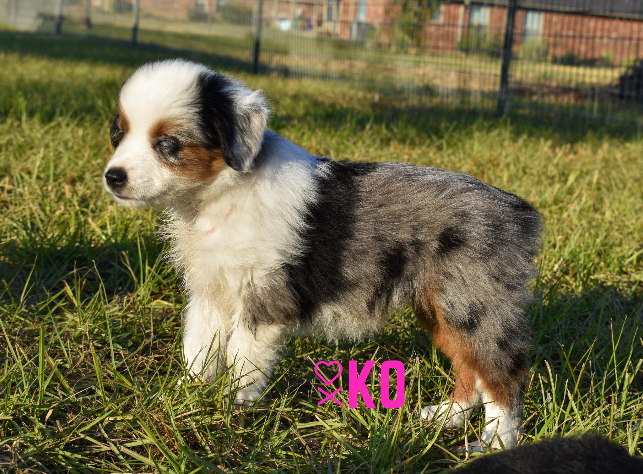 Our puppies include red tri-color, black tri, red merle, and blue merle. Colors will vary depending on the parent dogs.