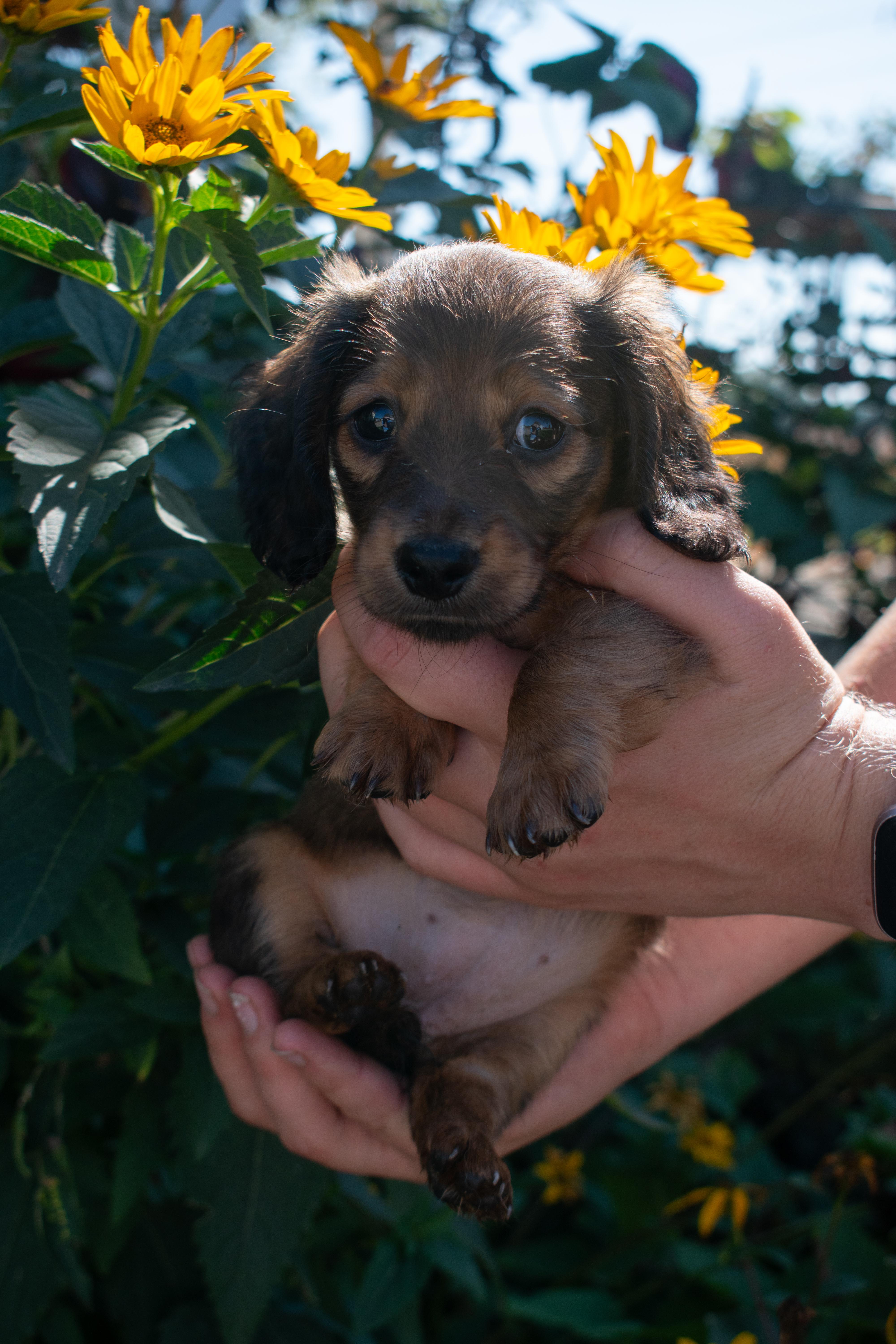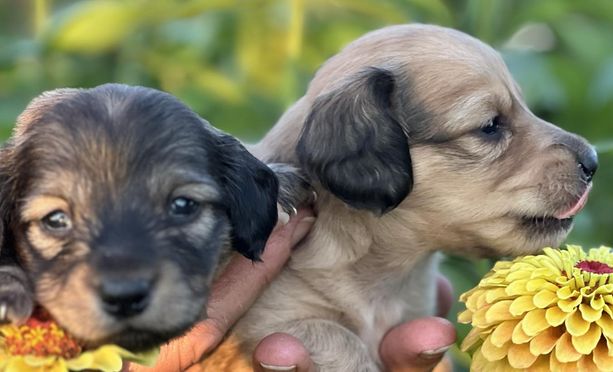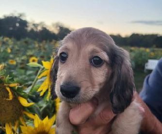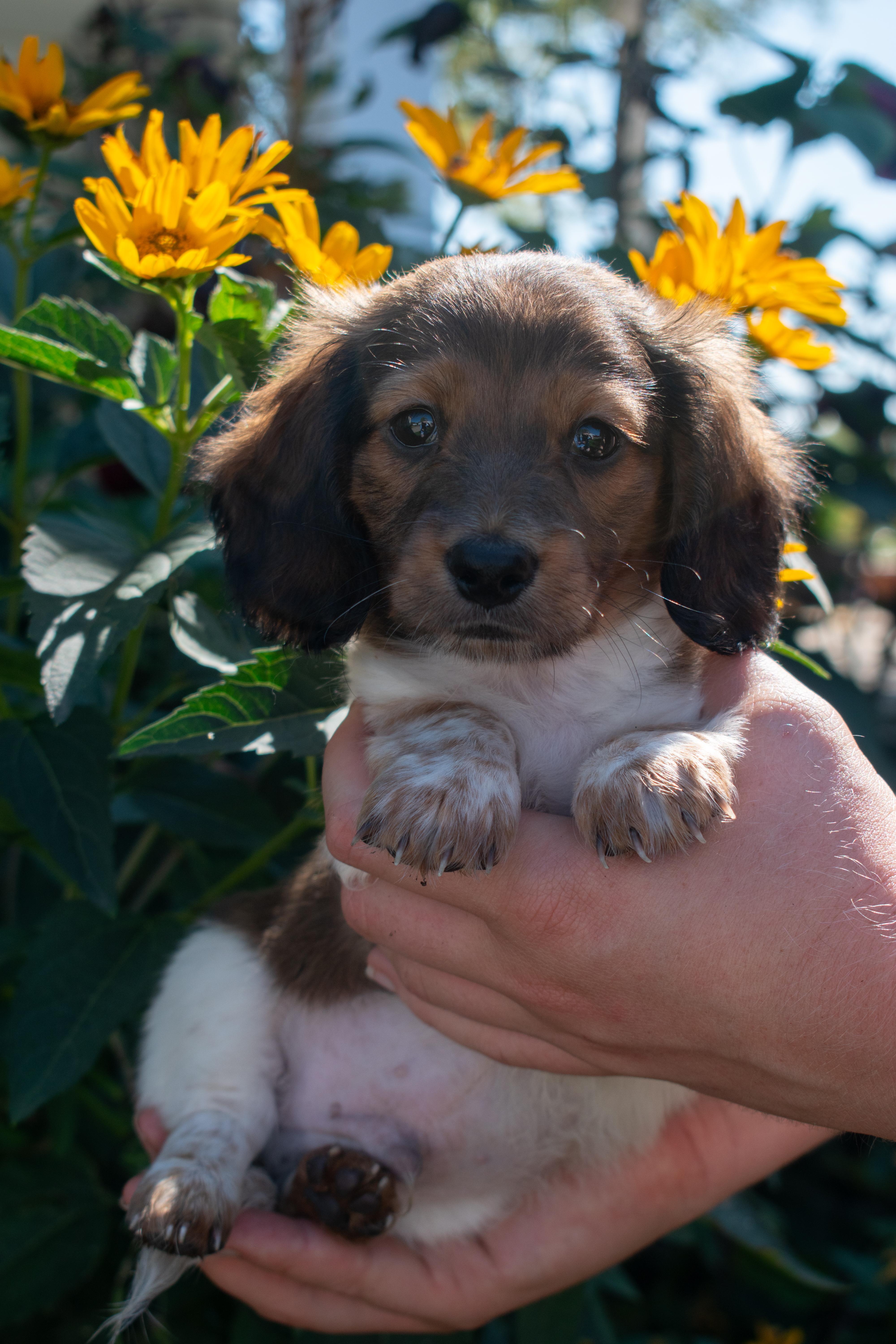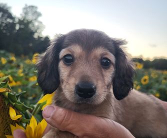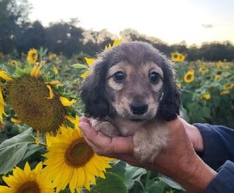 I'm John & Cynthia A., the breeder behind Knollbrook Farm located in Goshen, IN. We are a small family dairy farm that hast 1-2 litters of Miniature Dachshunds a year. We adore our dogs and give them the best! Our dogs are family members- living in our home and running around our farm. They are exposed to multiple people, large & small dogs, cats, and cows. Puppies are vet checked, come with a 1-year health guarantee, are current on vaccinations/worming, microchipped & limited AKC registrable.