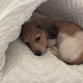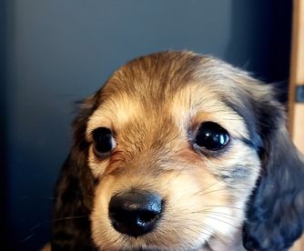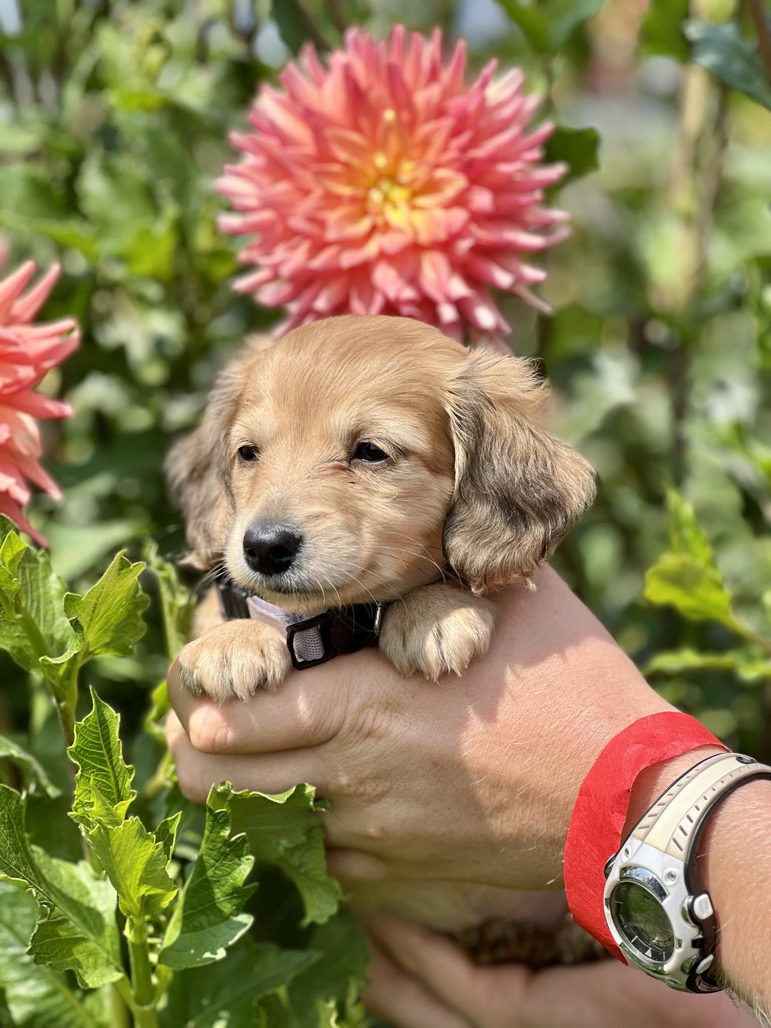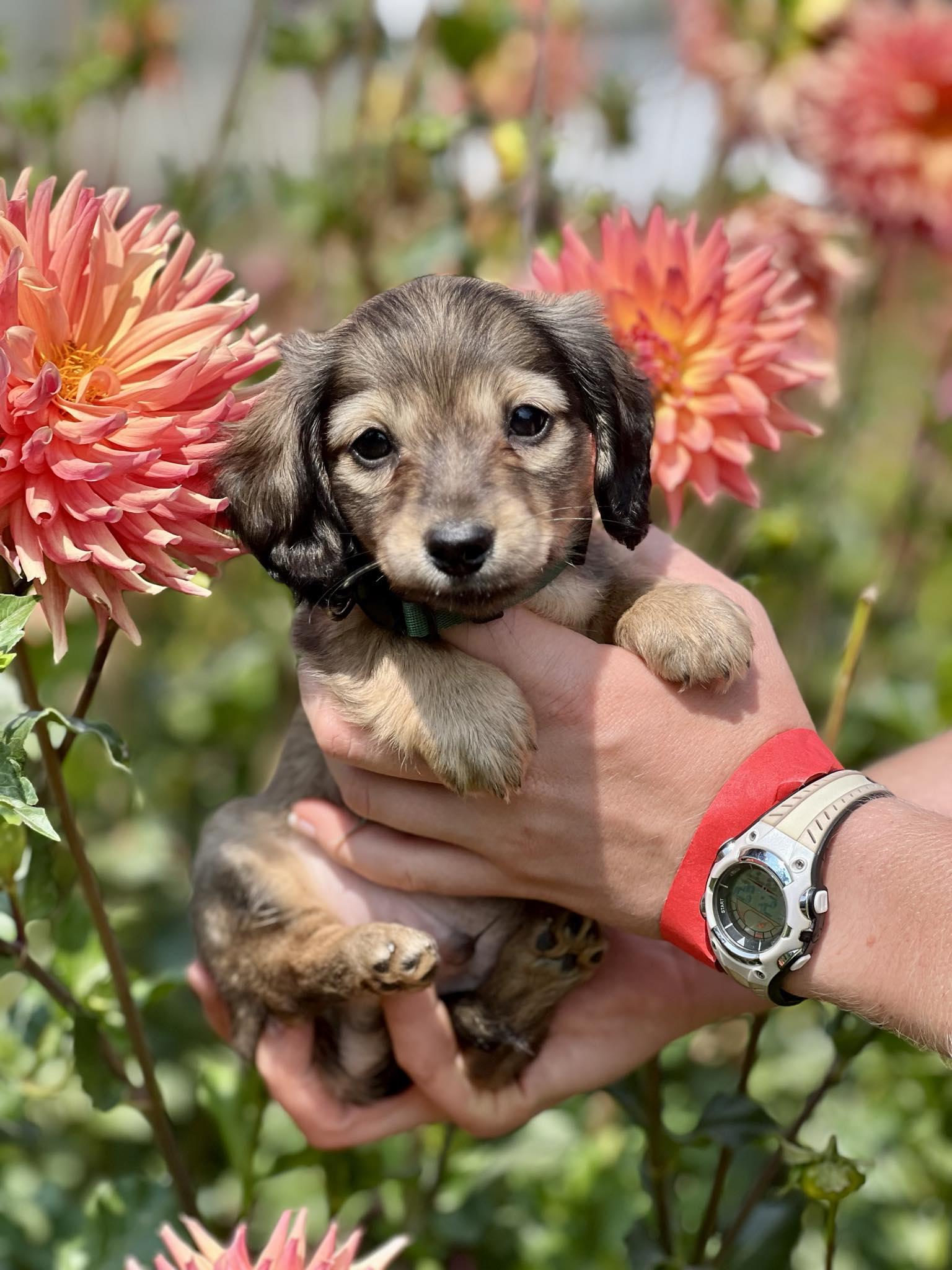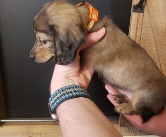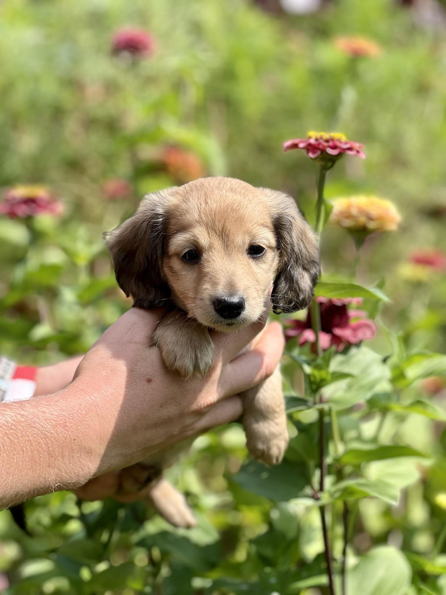 I'm John & Cynthia A., the breeder behind Knollbrook Farm located in Goshen, IN. We are a small family dairy farm that hast 1-2 litters of Miniature Dachshunds a year. We adore our dogs and give them the best! Our dogs are family members- living in our home and running around our farm. They are exposed to multiple people, large & small dogs, cats, and cows. Puppies are vet checked, come with a 1-year health guarantee, are current on vaccinations/worming, microchipped & limited AKC registrable.
