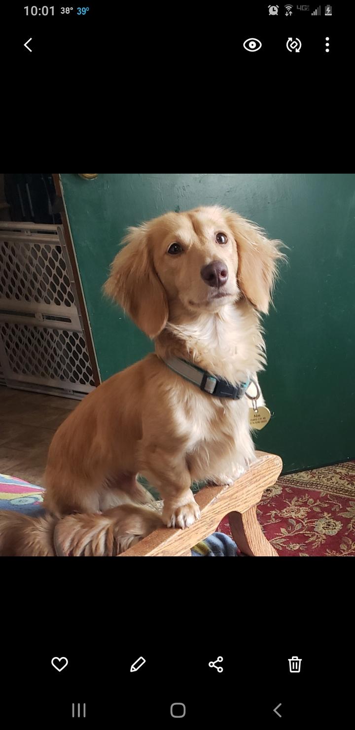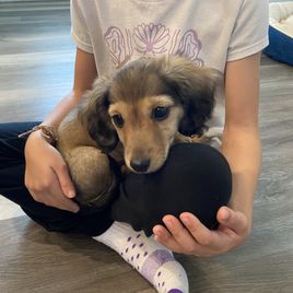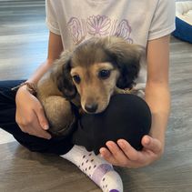 Zoe is a female Dachshund. Carefully selected as a great representative of her breed, John & Cynthia decided to make her part of their program. John & Cynthia has passed Good Dog’s screening process, which involved a review of their breeding practices, environment, and the mental and physical health of their dogs.