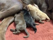 Our puppies include black, chocolate, and yellow. Colors will vary depending on the parent dogs.