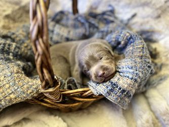 We had the best experience with Bailey at Knotty Creek Labradors! She was incredibly knowledgeable and responsive, helping us pick out the perfect little chocolate lab girl for our lifestyle. Bailey kept us updated on the litter, gave us puppy food recommendations, and provided our pup's first set shots. Our sweet Millie (now 3 months old) has been with us for 2 months, and she's everything we could have hoped for-spunky, cuddly, energetic, and so smart! It's been amazing to watch her grow, and we love looking back at her parents’ pictures on Good Dog and seeing how much she resembles them. Even when Millie's mama wasn't feeling well, Bailey went above and beyond to make sure the puppies were healthy and cared for, and our little girl turned out absolutely perfect. We couldn't have asked for a better breeder or experience - thank you, Bailey, for giving us our sweet Millie Moo!