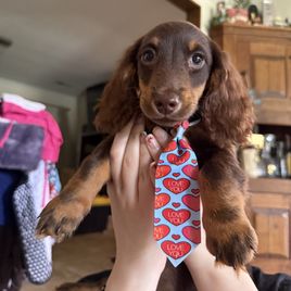 We got our dachshund, Larry, from Bridget, and it was one of the best decisions we’ve ever made. From the very beginning, she was incredibly knowledgeable about the breed and answered every question we had. She provided many updates on Larry after we decided to purchase him and before we picked him up.